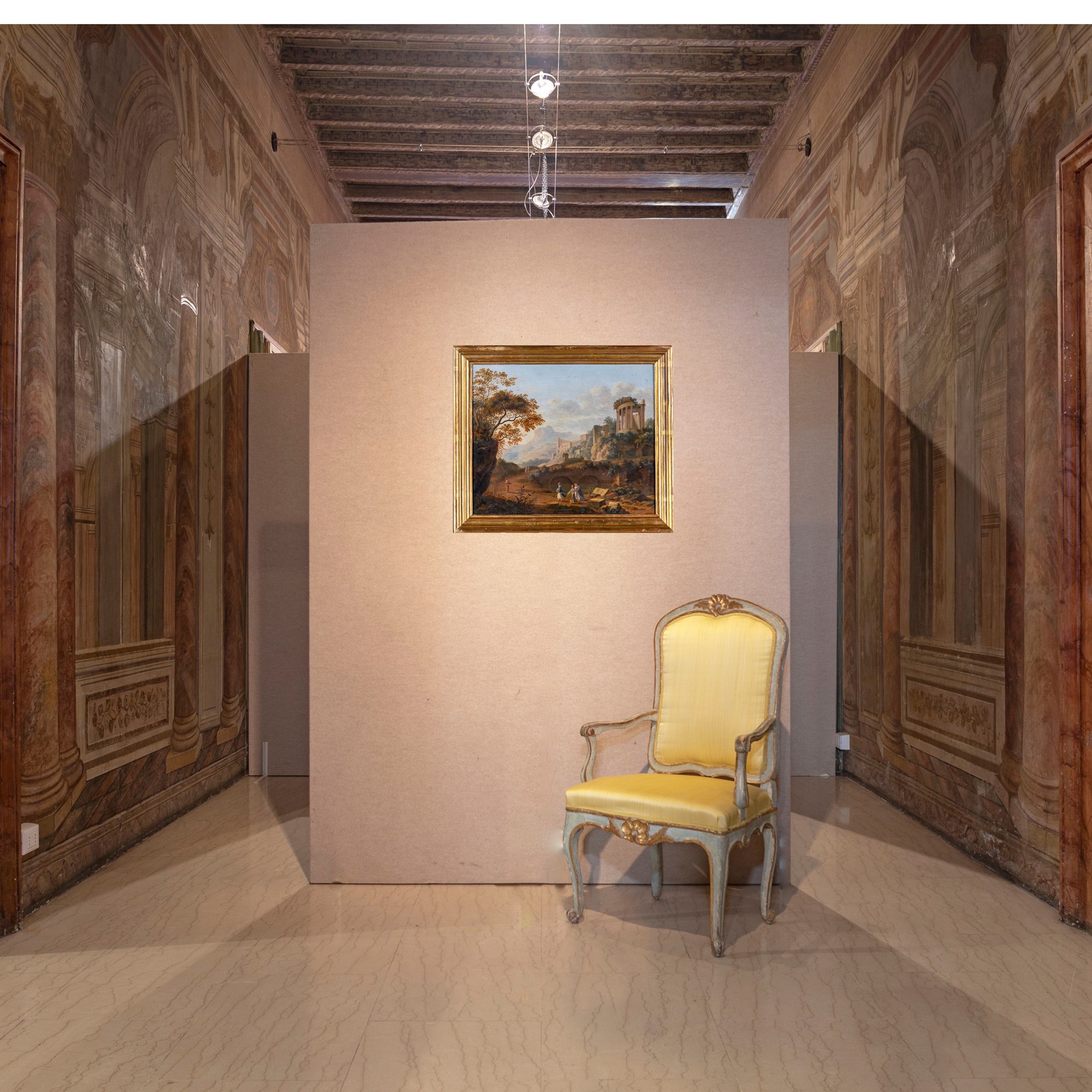 Lotto 15 | Scuola francese del XVIII secolo (0 - 0) Veduta di paesaggio con tempio Olio su tavola cm 34x41 - in cornice: 42x48