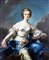 Replica da un celebre dipinto di Jean-Marc Nattier con il ritratto della dama De Baglion rappresentata come Flora. La tela presenta delle libere variazioni rispetto al modello di riferimento. L'opera è arricchita da una cornice in legno dorato in stile Luigi XV.