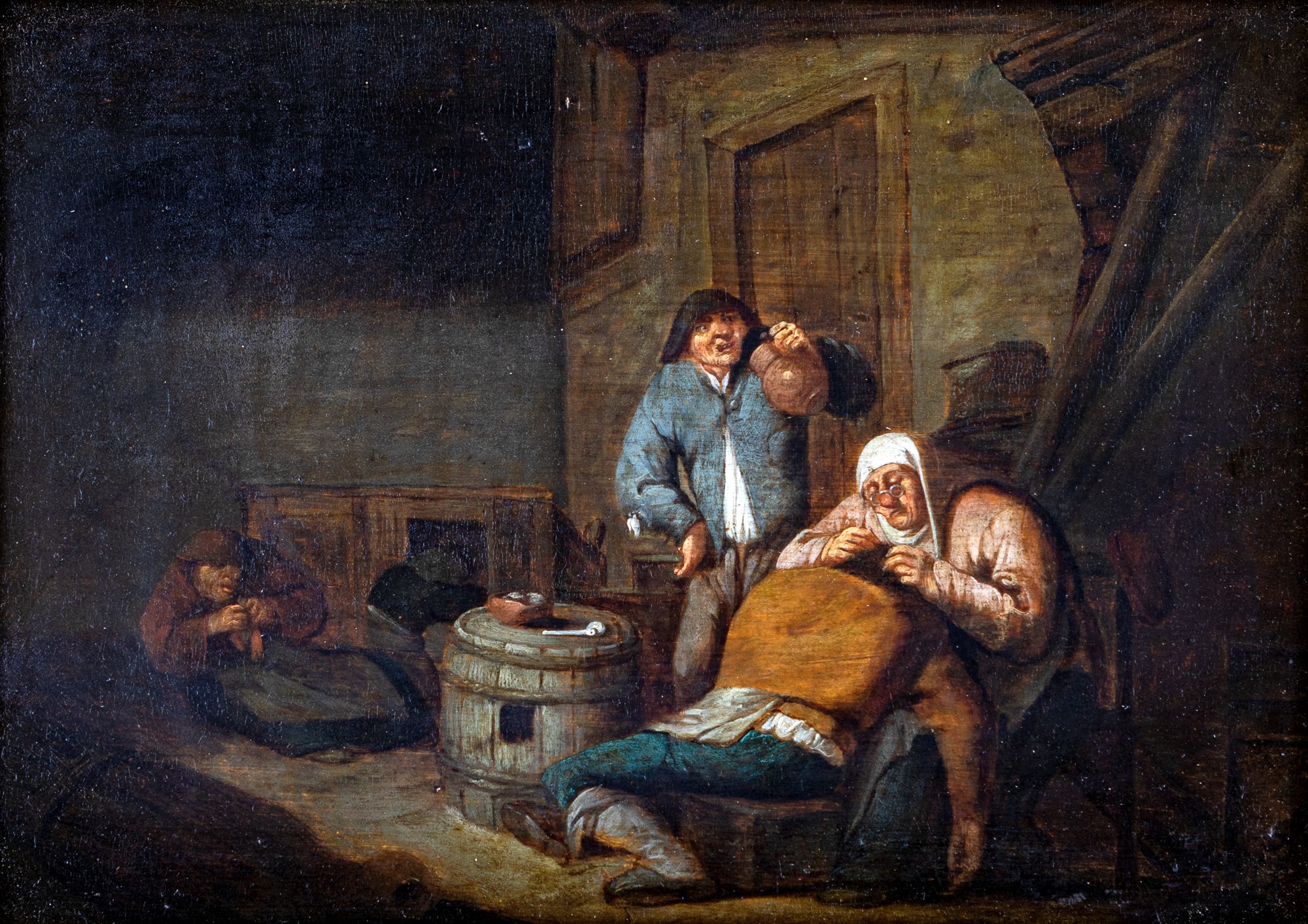 Pregevole e divertente dipinto su piccola tavola con la rappresentazione di un uomo intento a estrarre pidocchi dai capelli di un amico, secondo il consueto stile del pittore fiammingo Adriaen Brouwer. L'artista, celebre per le sue intelligenti e vivaci raffigurazioni di episodi spesso triviali e legati ai temi dell'ubriachezza e della vita delle osterie, anche in questo caso si serve di una pennellata sicura e veloce, dell'uso di una luce guizzante e rivelatrice e dell'adozione di tipi fisici grotteschi e caricaturali