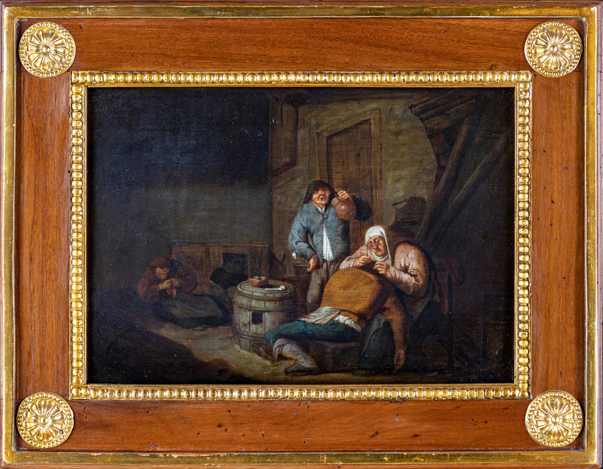 Adriaen Brouwer (Oudenaarde, 1605 - Antwerp, 1638) Scena di genere Olio su tavola cm 23x33 - in cornice 33x43