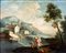 Pittore Veneto XVII/XVIII secolo ( - ) Paesaggio lacustre con Tobiolo e l’Angelo. Olio su tela cm 70x90 - in cornice: cm 87x105