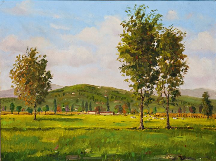 FREGONARA LUCIANO 1932 "La collina torinese" 45x60 olio su tela Opera firmata...