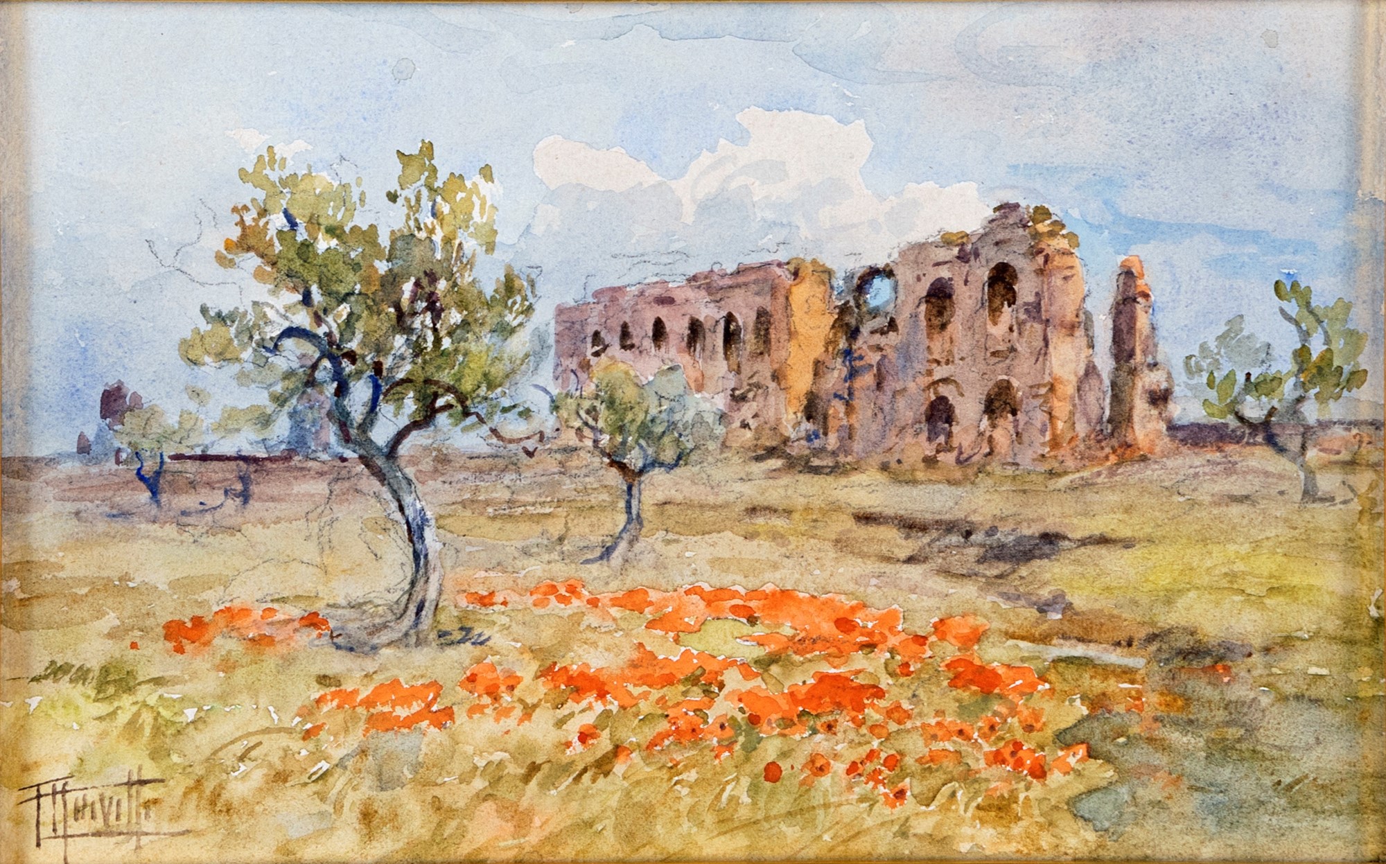 Filippo Anivitti (Roma, 1876 - Roma, 1955) Rovine dell'Acquedotto 1932 Matita e acquarello su carta cm 15,5x25