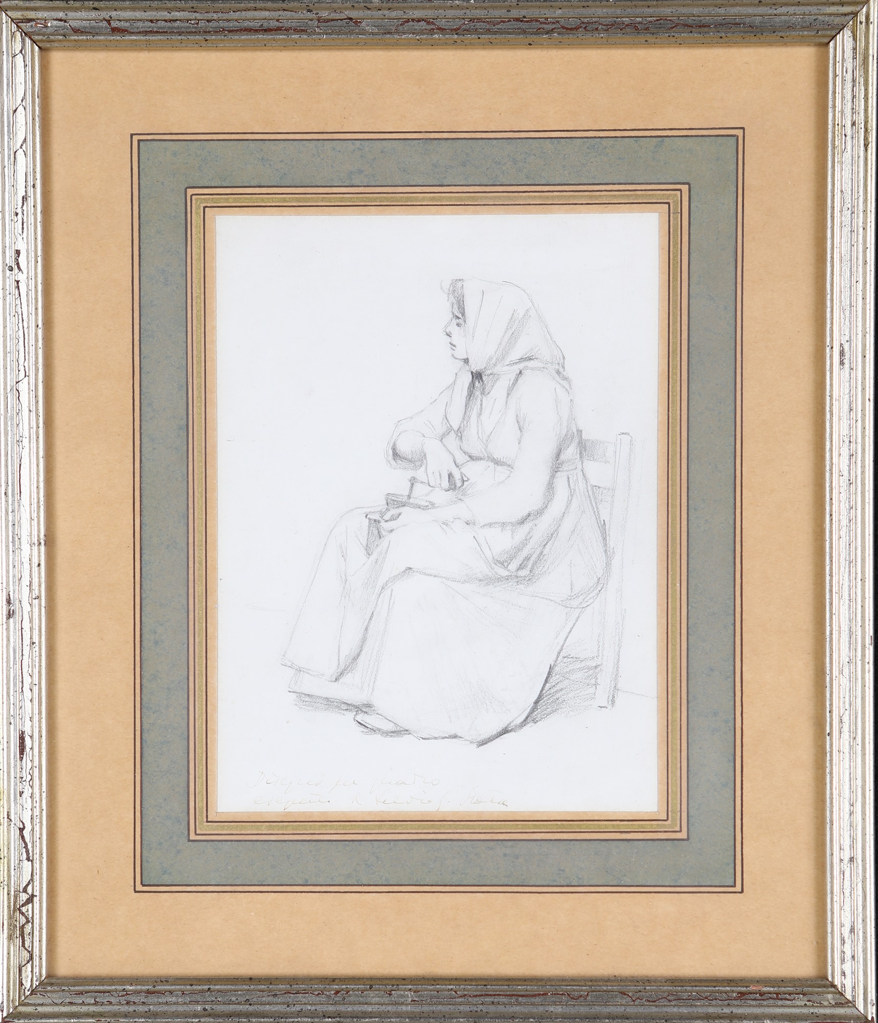 Silvio Giulio Rotta (Venezia, 1853 - Venezia, 1913) Fanciulla seduta Matita su carta cm 21,5x16