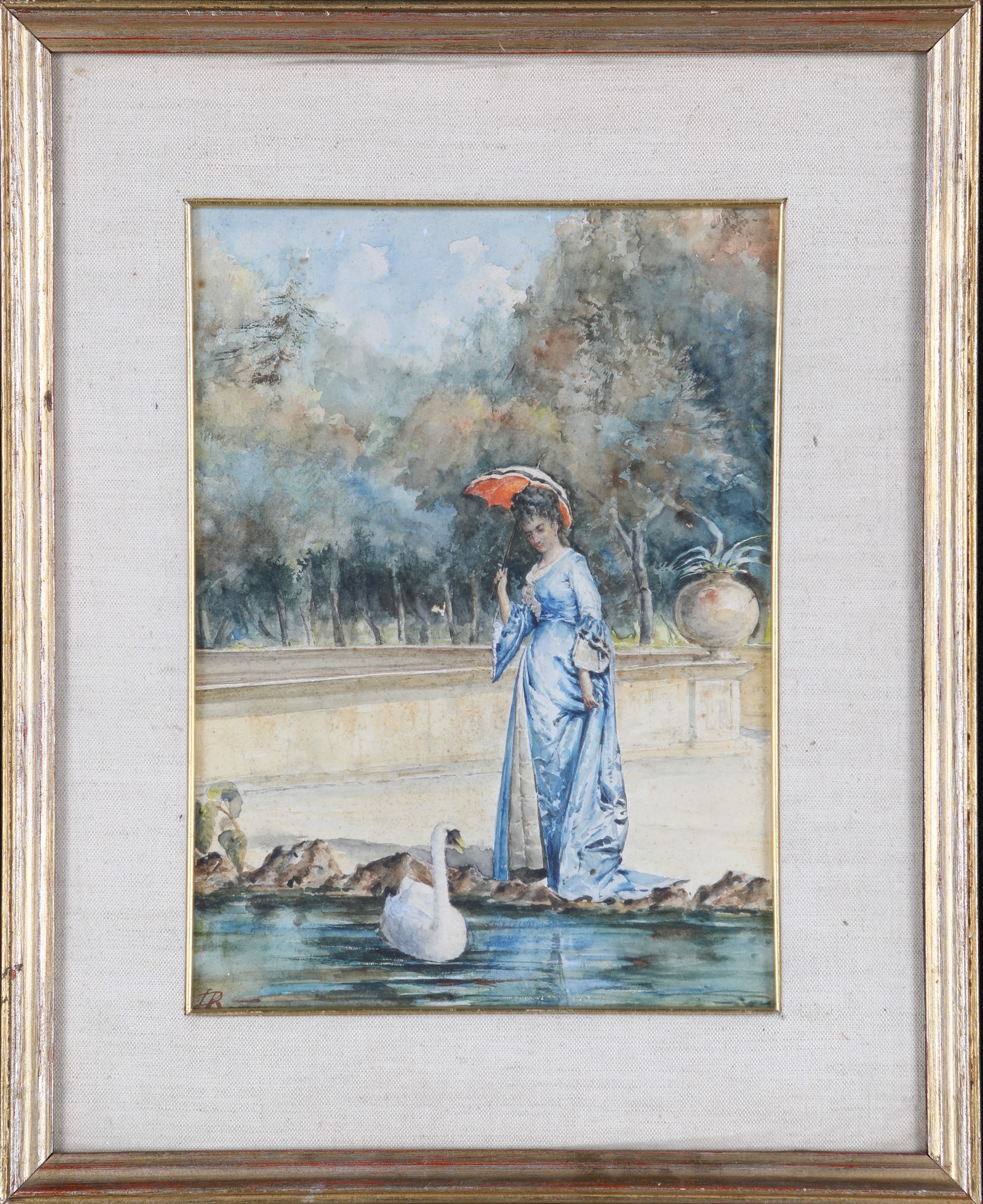 Luigi Da Rios (Ceneda, 1844 - Venezia, 1892) Passeggiata al parco Acquarello su carta cm 30x22
