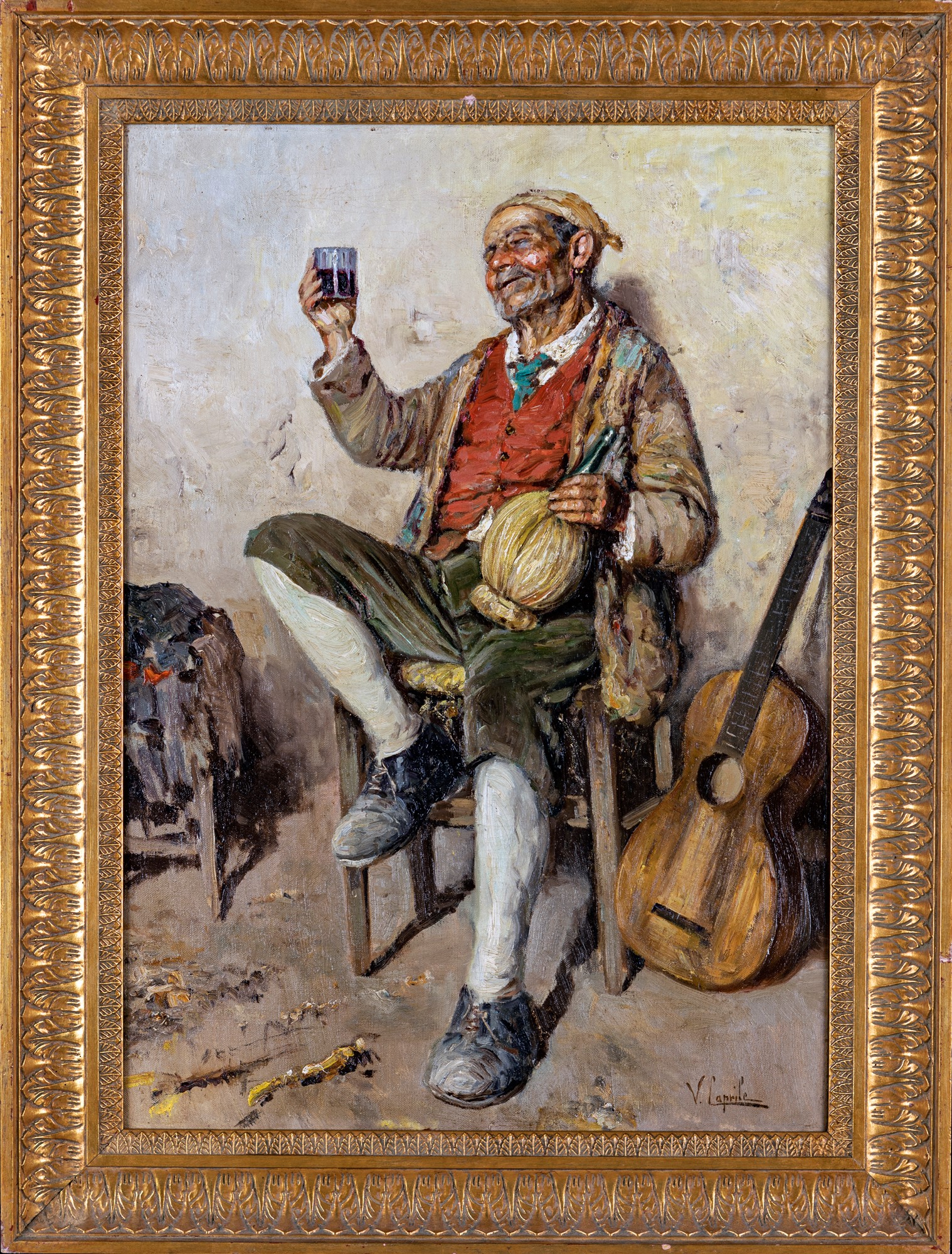 Vincenzo Caprile (Napoli, 1856 - Napoli, 1936) Il bevitore Olio su tela cm 68x48 - in cornice 83x63
