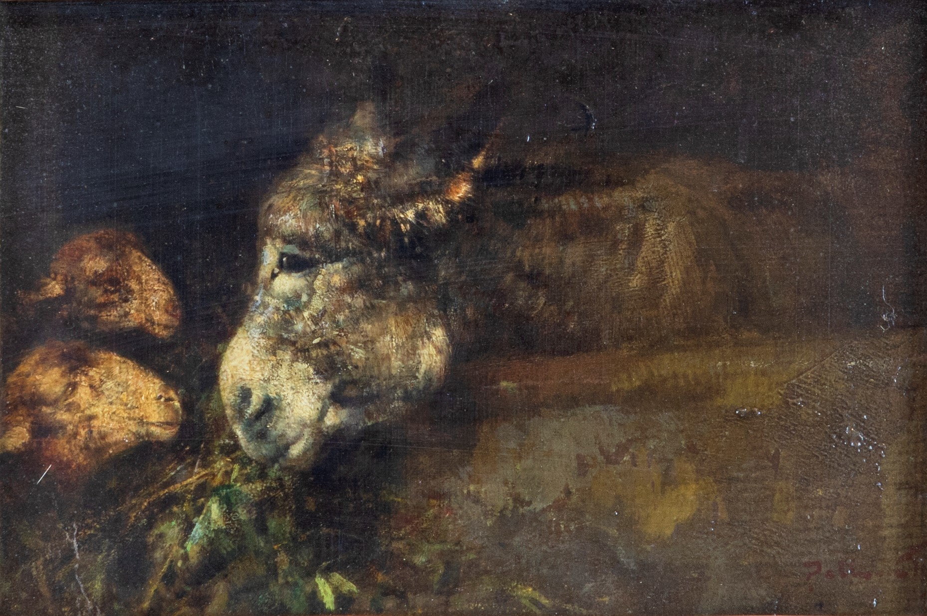 Tito Pellicciotti (Barisciano, 1871 - Barisciano, 1950) Asinello Olio su cartone cm 17x25