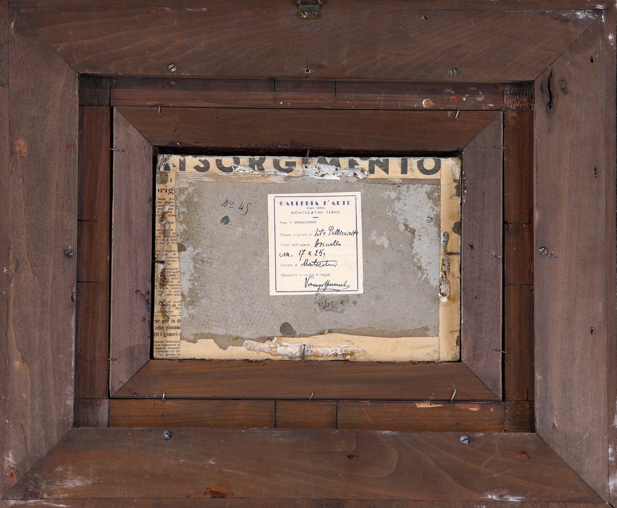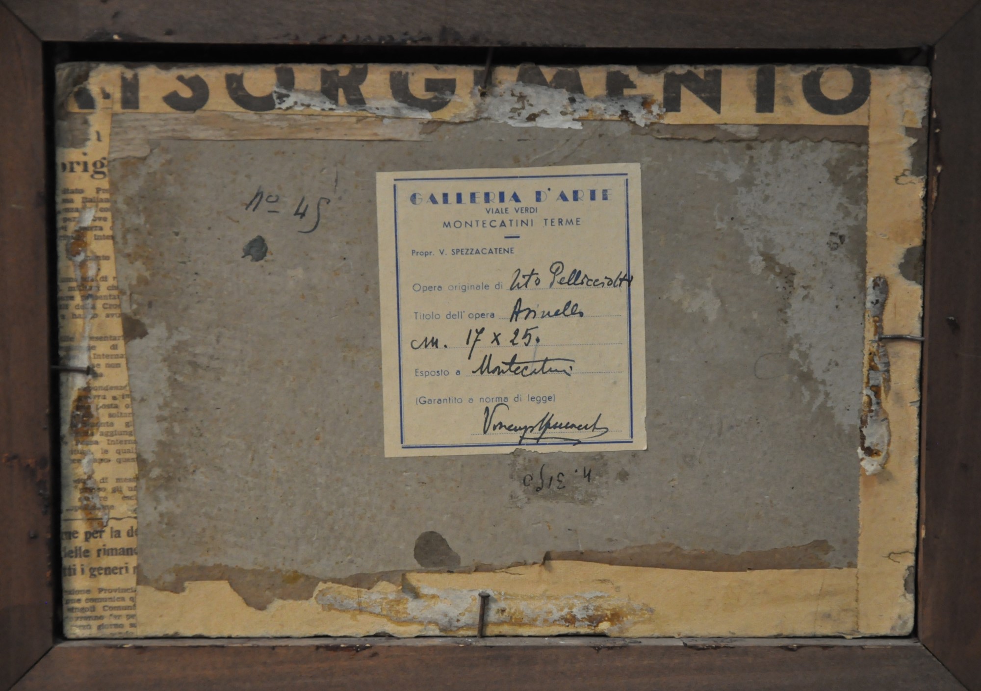 Firma in basso a destra "Pellicciotti". Al verso reca etichetta della "Galleria d'arte Viale Verdi, Montecatini Terme, di V. Spezzacatene".