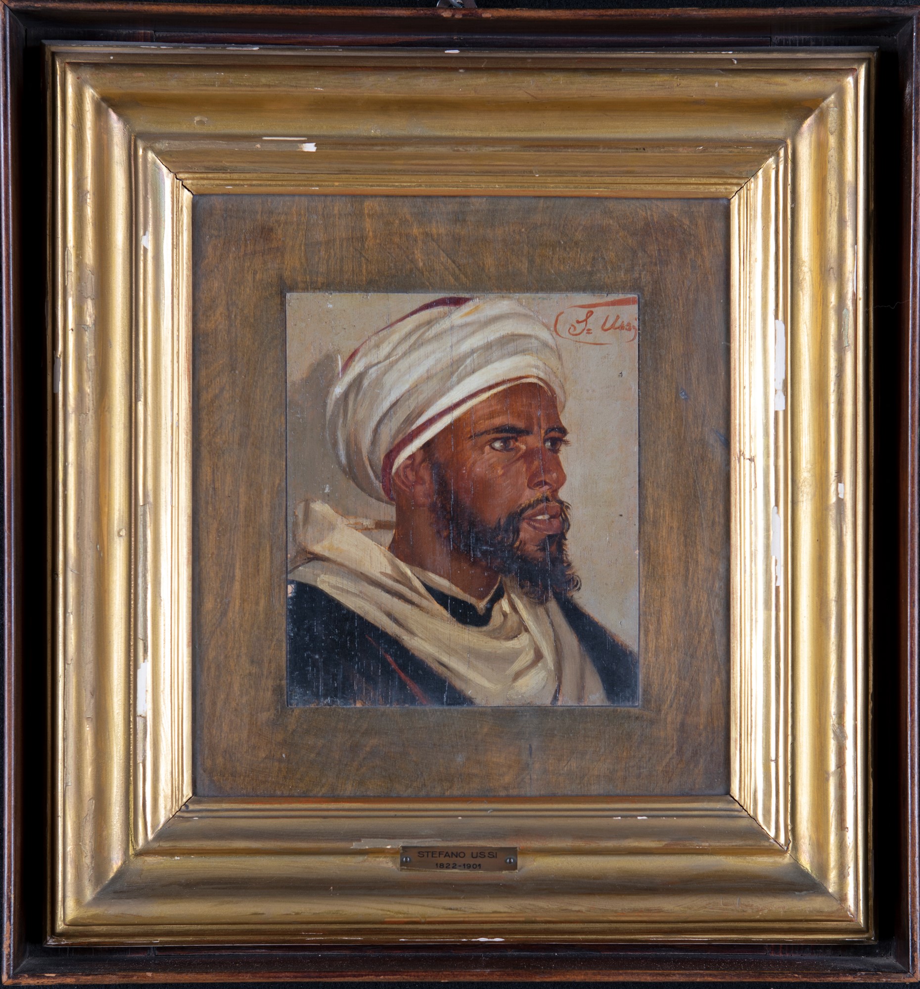 Stefano Ussi (Firenze, 1822 - Firenze, 1901) Ritratto di uomo con turbante Olio su tavola cm 23x19,5