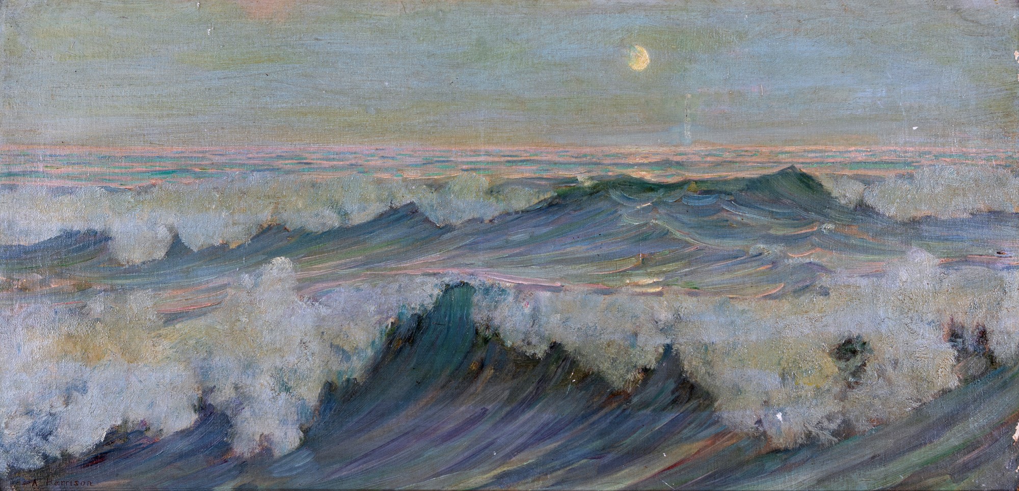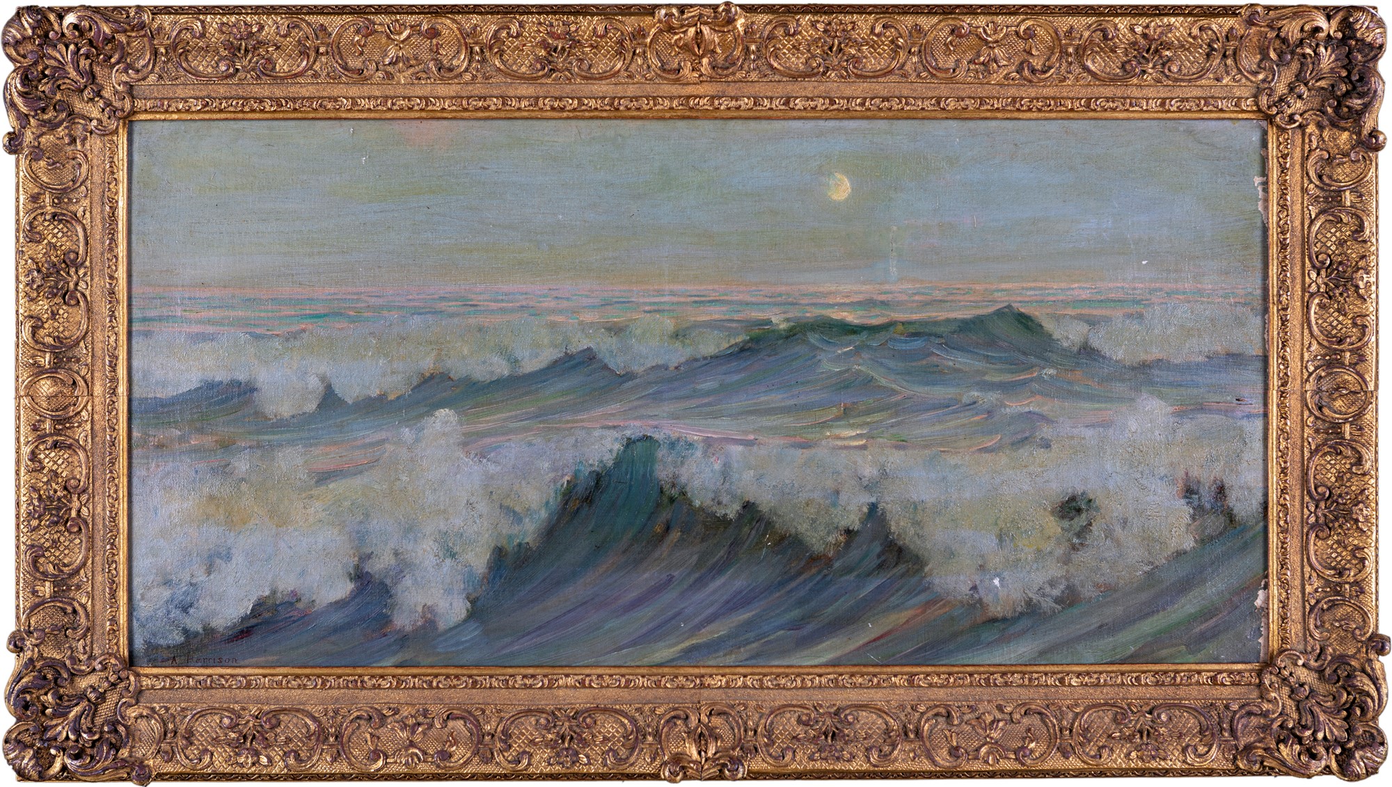 Thomas Alexander Harrison (Philadelphia, 1853 - Paris, 1930) Mareggiata Olio su tela cm 50x101 - in cornice cm 68x119