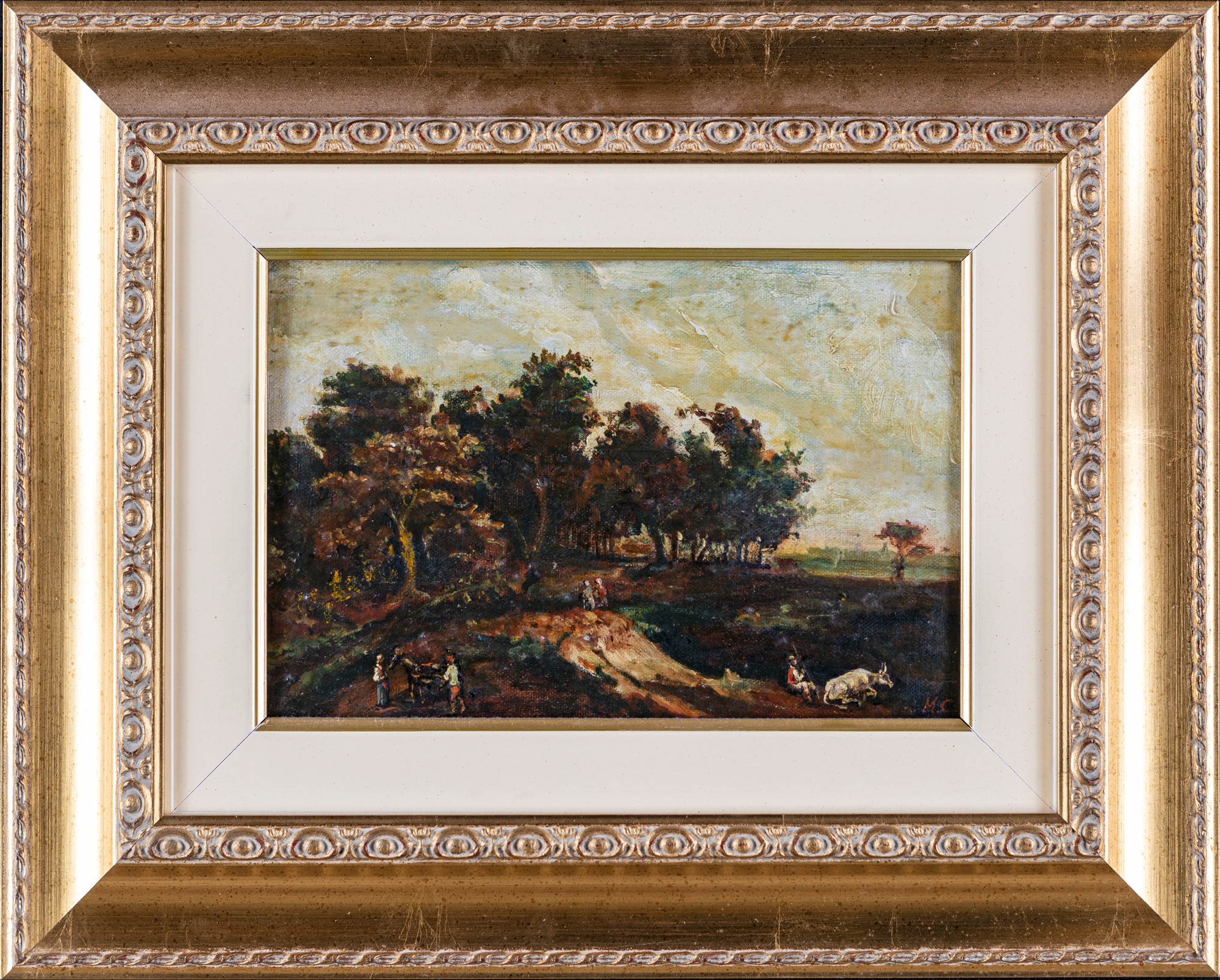 Pittore del XIX secolo ( - ) Paesaggio con pastori Olio su tela cm 20x30 - in cornice cm 41x51