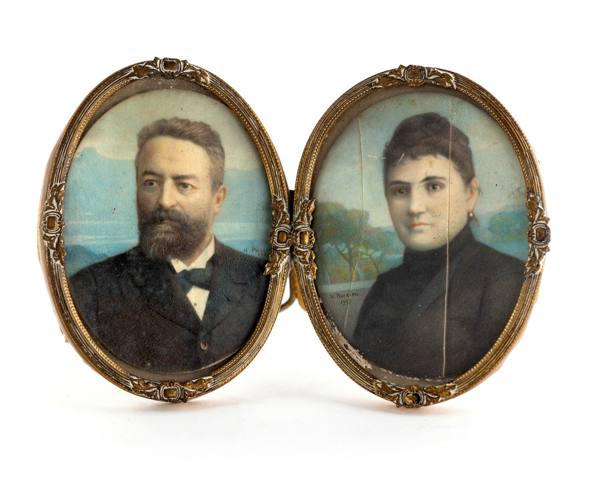 Norberto Pazzini (Verucchio, 1856 - Roma, 1937) a) Ritratto di gentiluomo b) Ritratto di nobildonna coppia di miniature a sesto ovale cm 8,5x6,5 - in cornice cm 10x15
