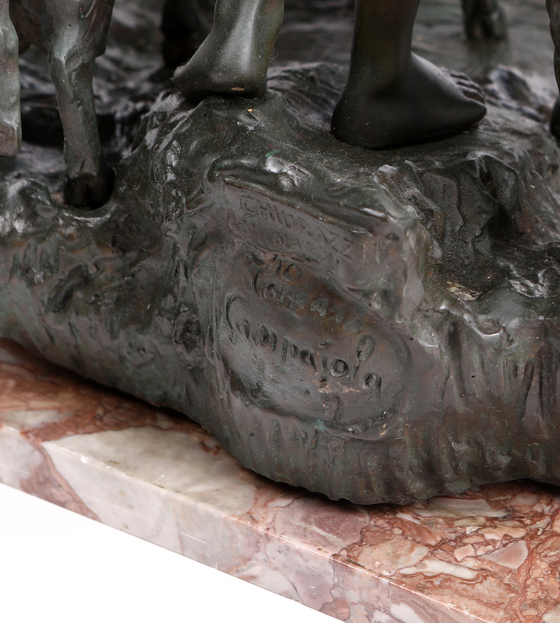 Tommaso Campajola (1890 - 1968) Contadino con caprette gruppo in bronzo cm 45x30x36