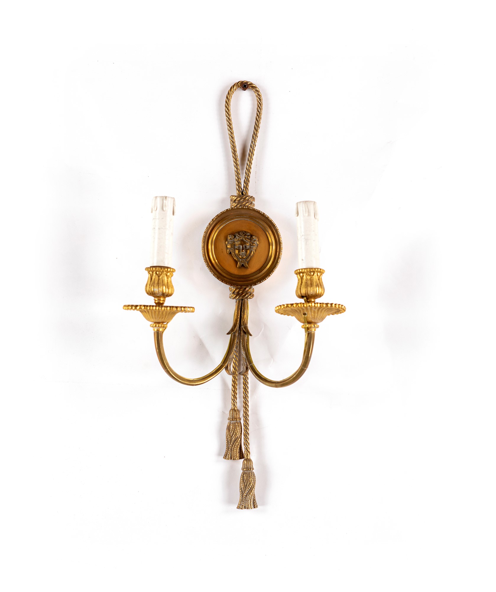 con supporto in forma di cordone ripiegato ornato nel punto di incrocio da medaglione circolare con testa di gorgone, en suite con la coppia precedentemente descritta