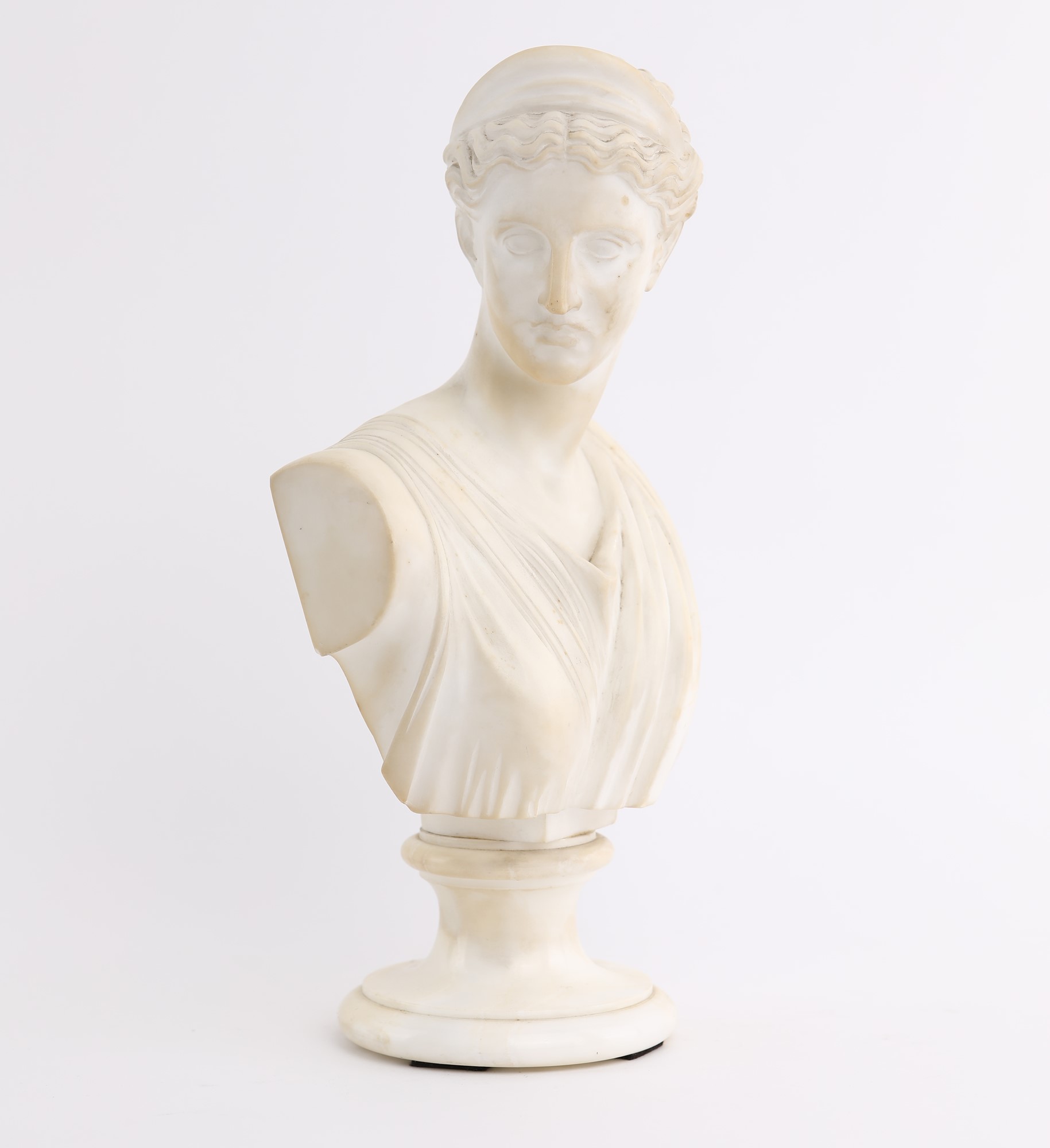 Piccolo busto di Artemide in marmo bianco, prima metà del XIX secolo altezza cm 34