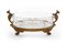 con vasca ovale decorata da spighe molate, trattenuta in una struttura con piedi ferini e manici in forma di grifo. Difetti al cristallo