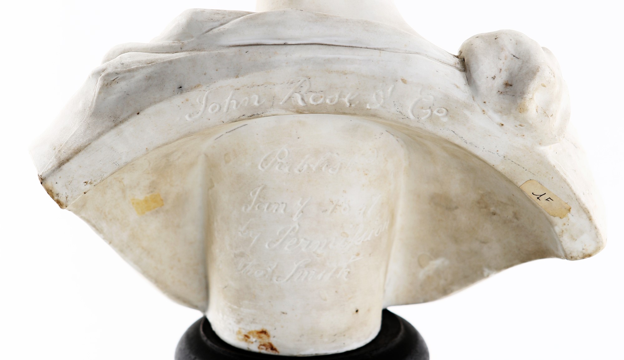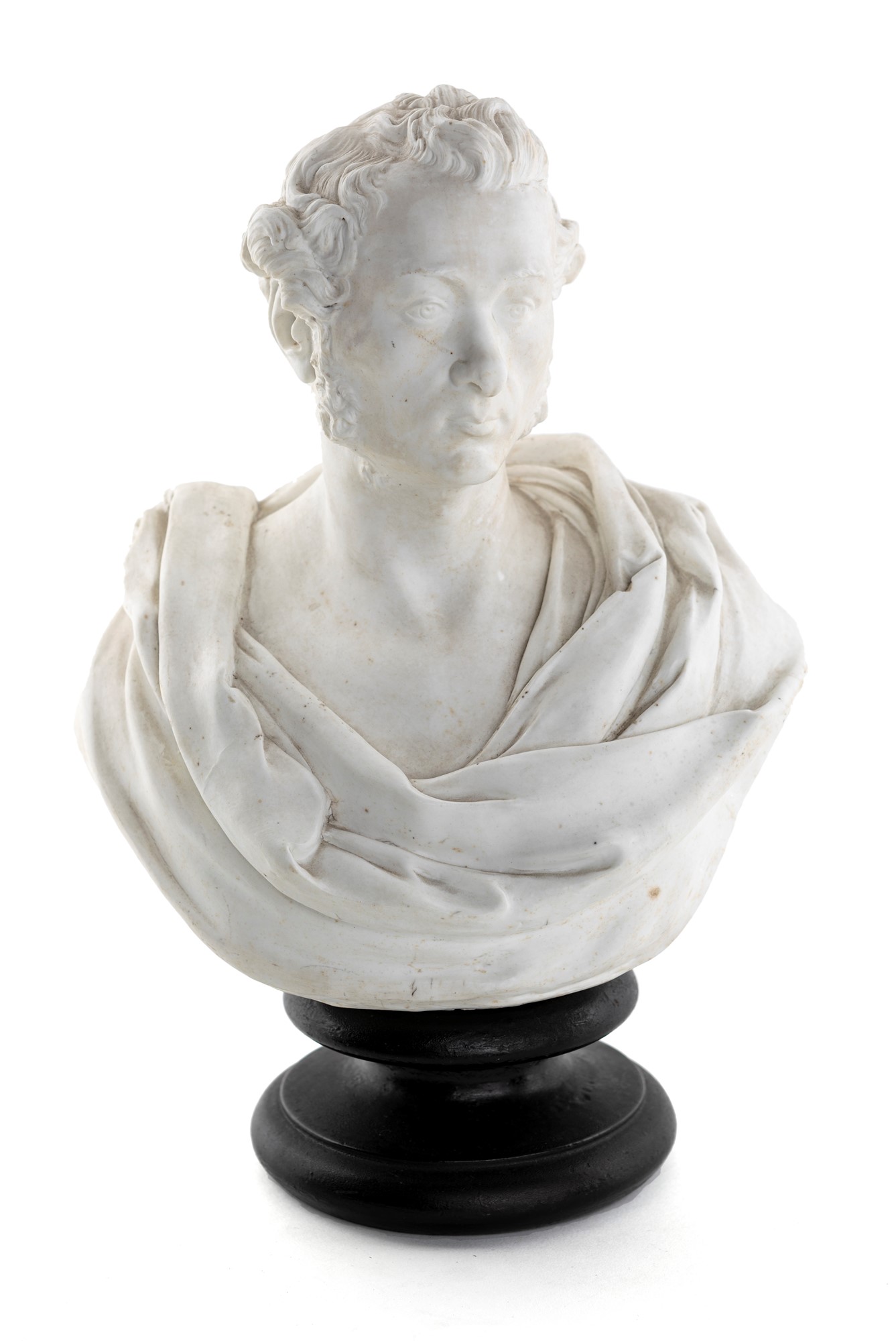 caratterizzato da folti favoriti e toga romana; piedistallo a rocchetto in legno ebanizzato; iscritto sul retro: John Rose & c. Published Jan 1841 by permission of Tho.Smith