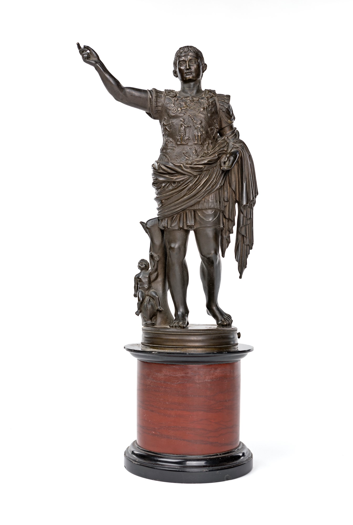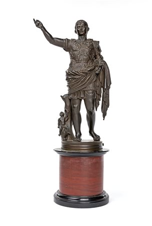 Scultura in bronzo brunito raffigurante l'Augusto di Prima Porta, inizi del XIX secolo altezza cm 34 - con la base cm 48