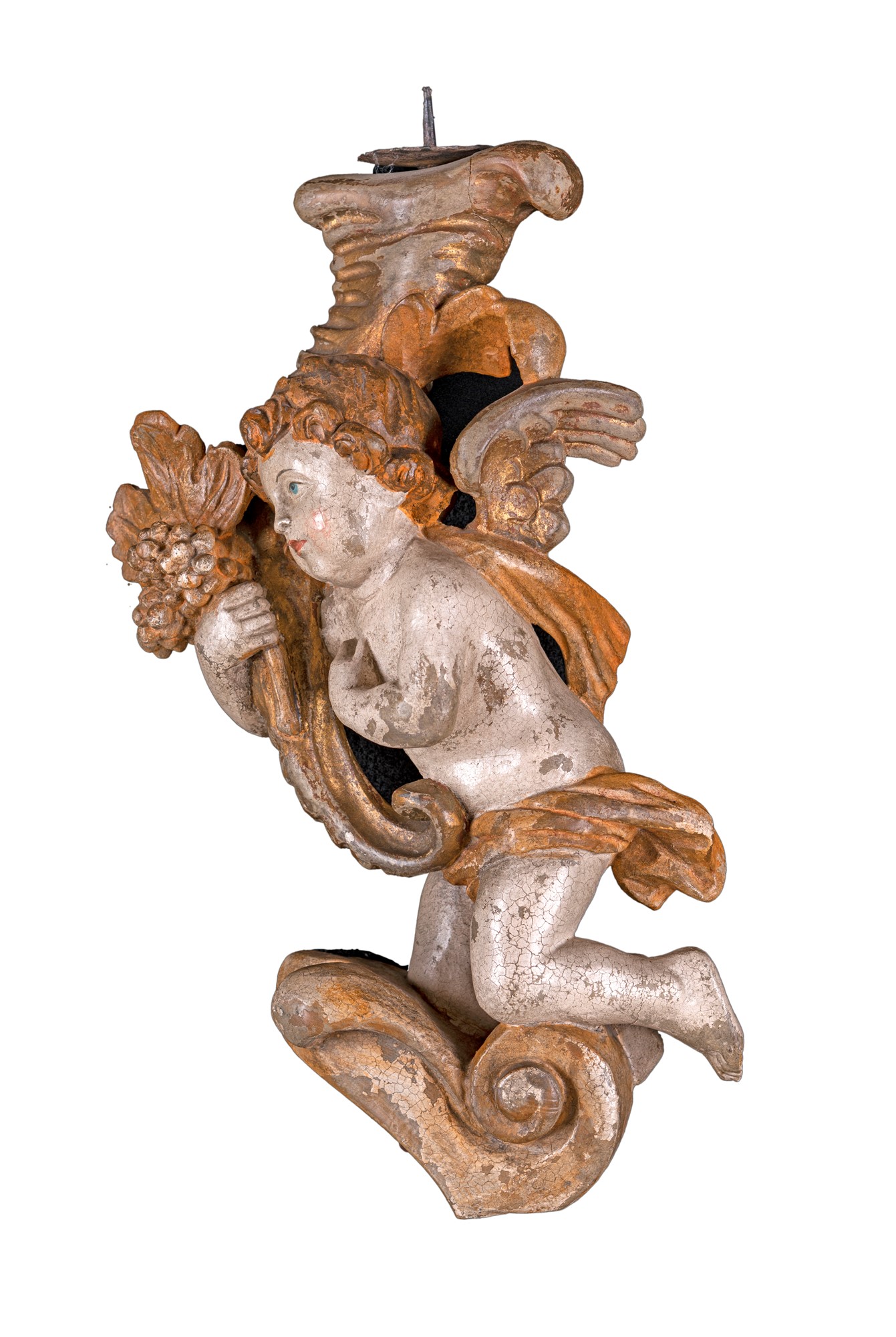 Reggicero parietale in legno laccato, XIX secolo altezza cm 46