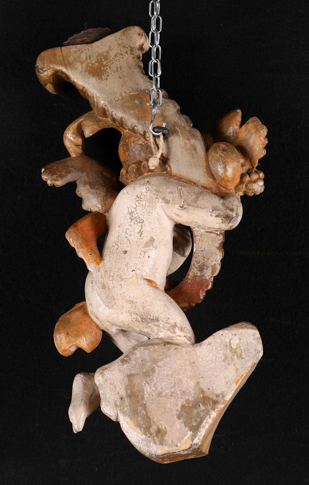 in forma di cornucopia sorretta da angelo inginocchiato su frammento di ricciolo architettonico
