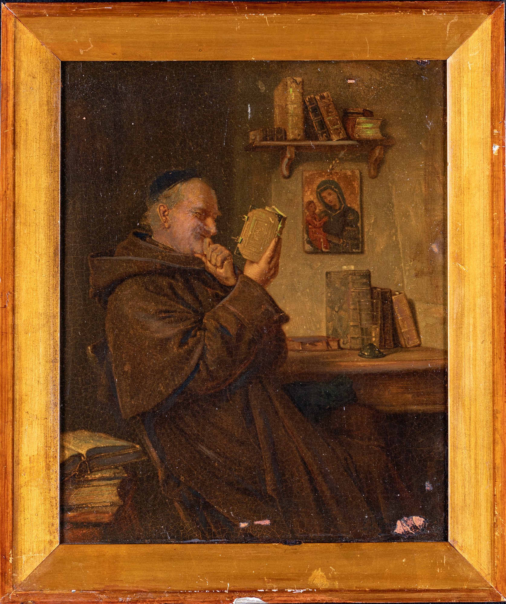 Precedente Lotto 270 Successivo Casa d'Aste Arcadia - Corso Vittorio Emanuele II 18, 00186 Roma Dipinti antichi e del XIX secolo - Antiquariato Antiquariato mercoledì 15 giugno 2022 ore 15:30 (UTC +01:00) Pittore della fine del XIX secolo ( - ) Interno con monaco olio su cartone cm 44x35 - in cornice cm 52x44