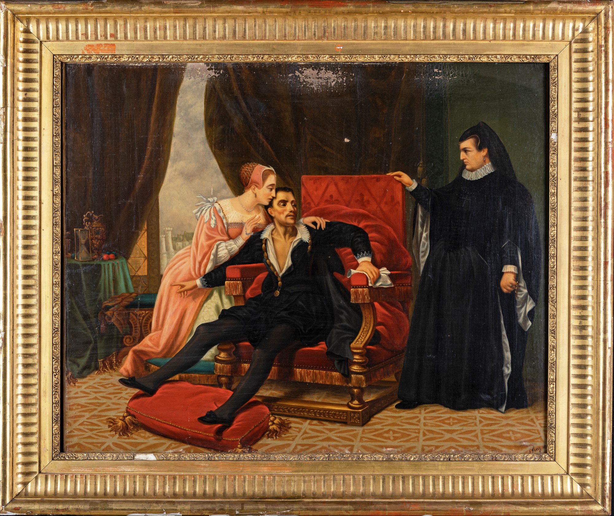 Lotto 276 | Pittore del XIX secolo ( - ) Scena di genere cm 79x98 - in cornice: cm 103x122