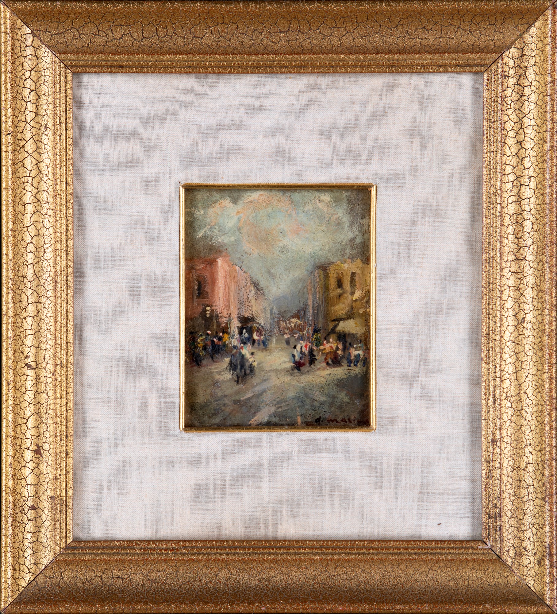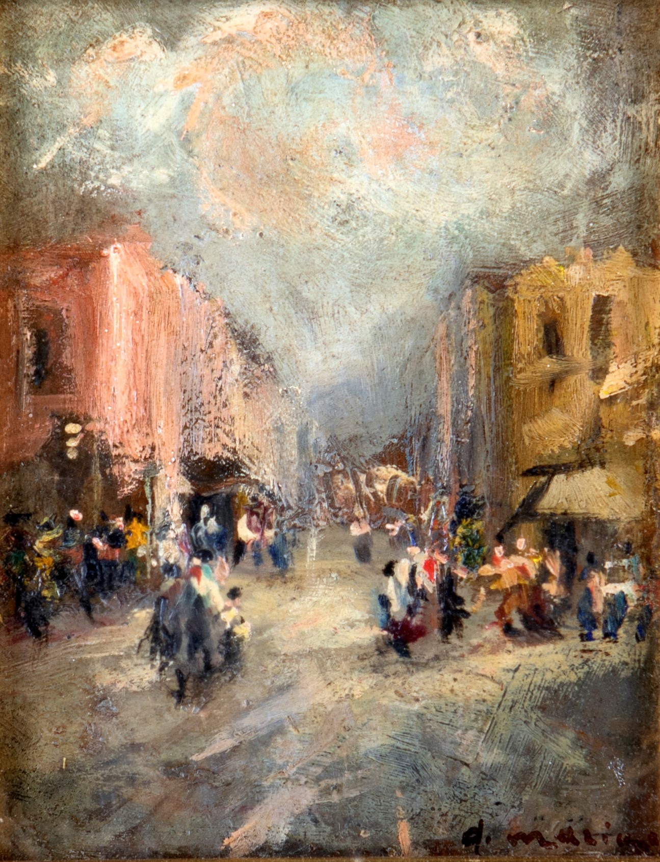 Pittore del XIX secolo ( - ) Scorcio cittadino olio su tavola cm 14,5x11,5 - in cornice cm 35x31,5
