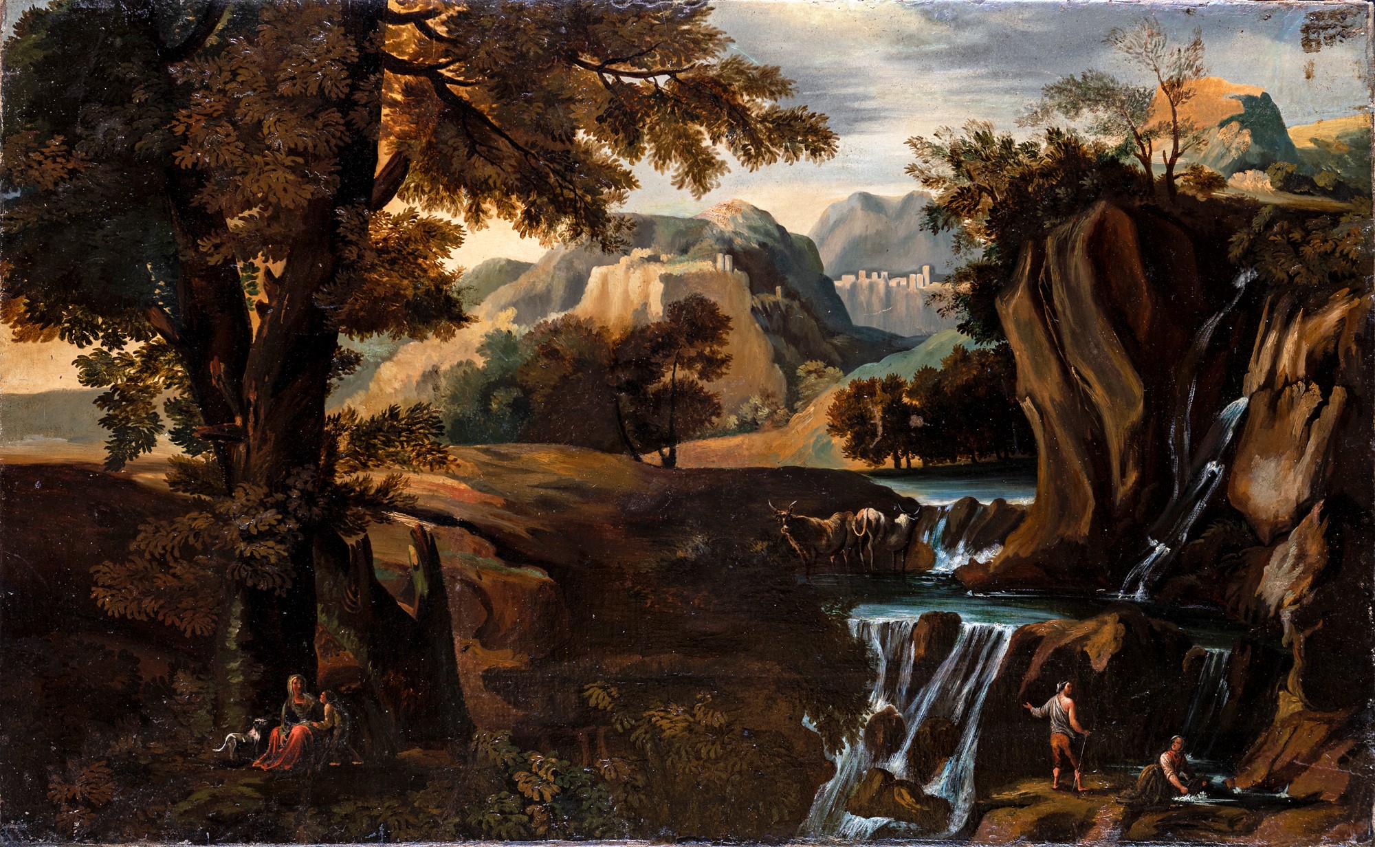 Precedente Lotto 287 Successivo Casa d'Aste Arcadia - Corso Vittorio Emanuele II 18, 00186 Roma Dipinti antichi e del XIX secolo - Antiquariato Antiquariato mercoledì 15 giugno 2022 ore 15:30 (UTC +01:00) Pittore del XIX secolo ( - ) a) Paesaggio con armenti e ruderi in lontananza b) Paesaggio con cascatelle