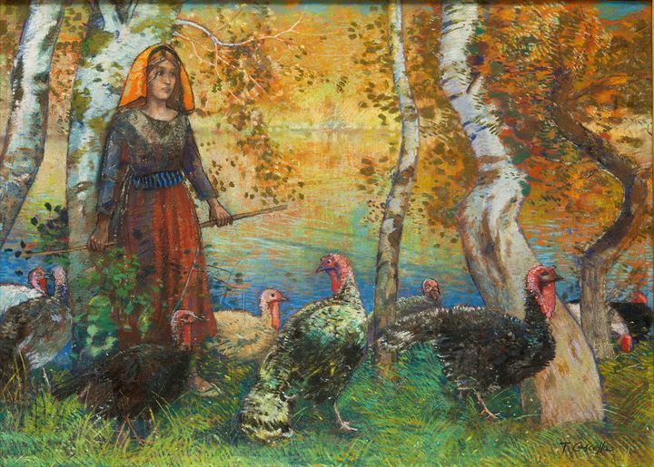 CASCELLA TOMMASO I 1951 "Guardiani di tacchini" 74,5x102 gessetti colorati su...