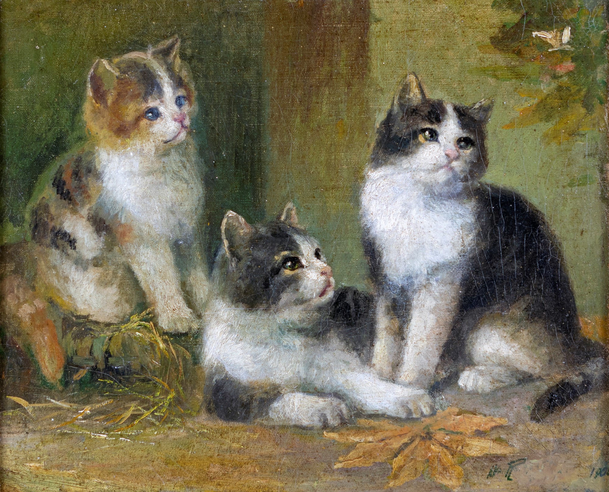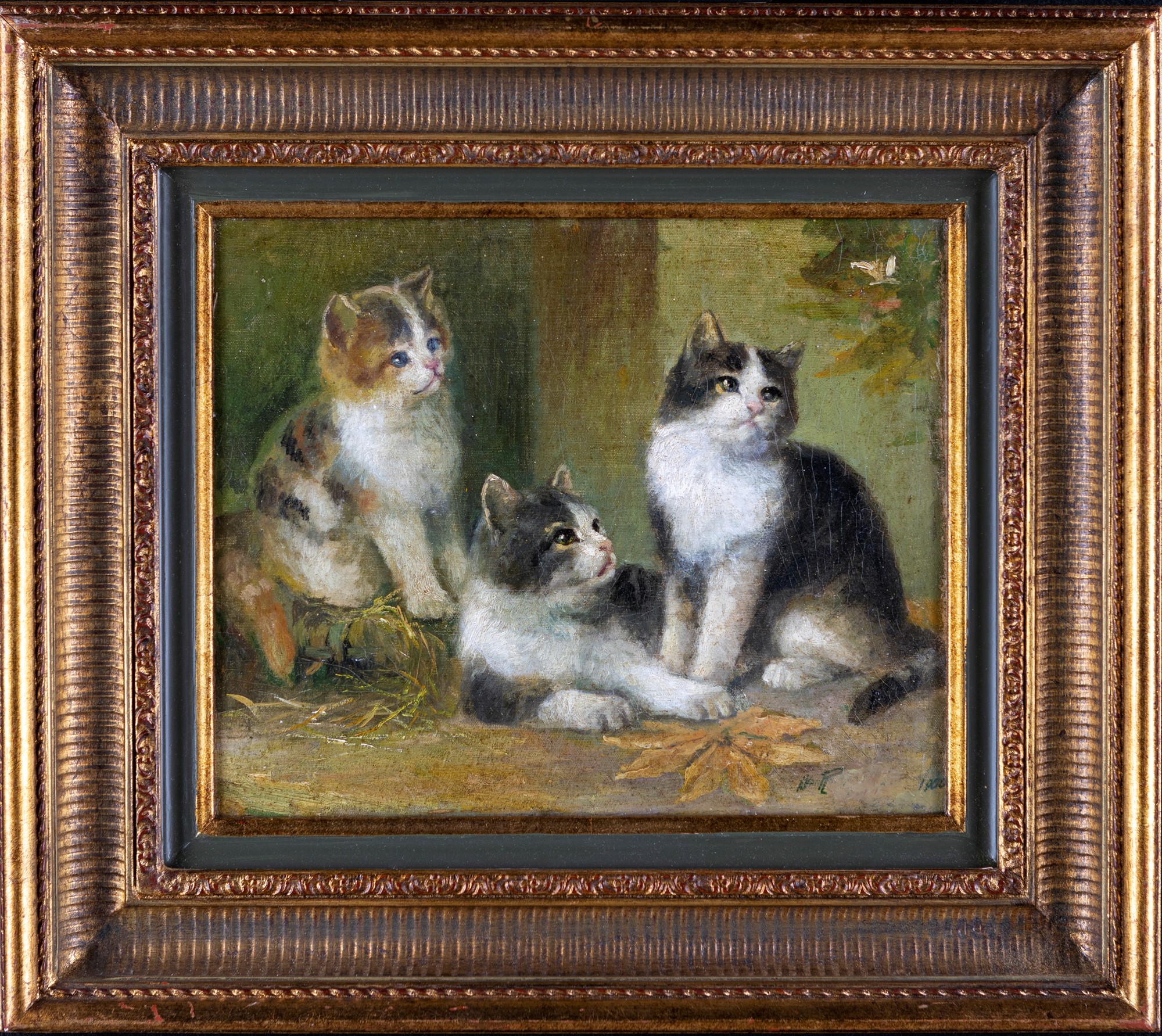 Pittore della fine del XIX secolo ( - ) Gatti olio su tela cm 28x34 - in cornice cm 46x52