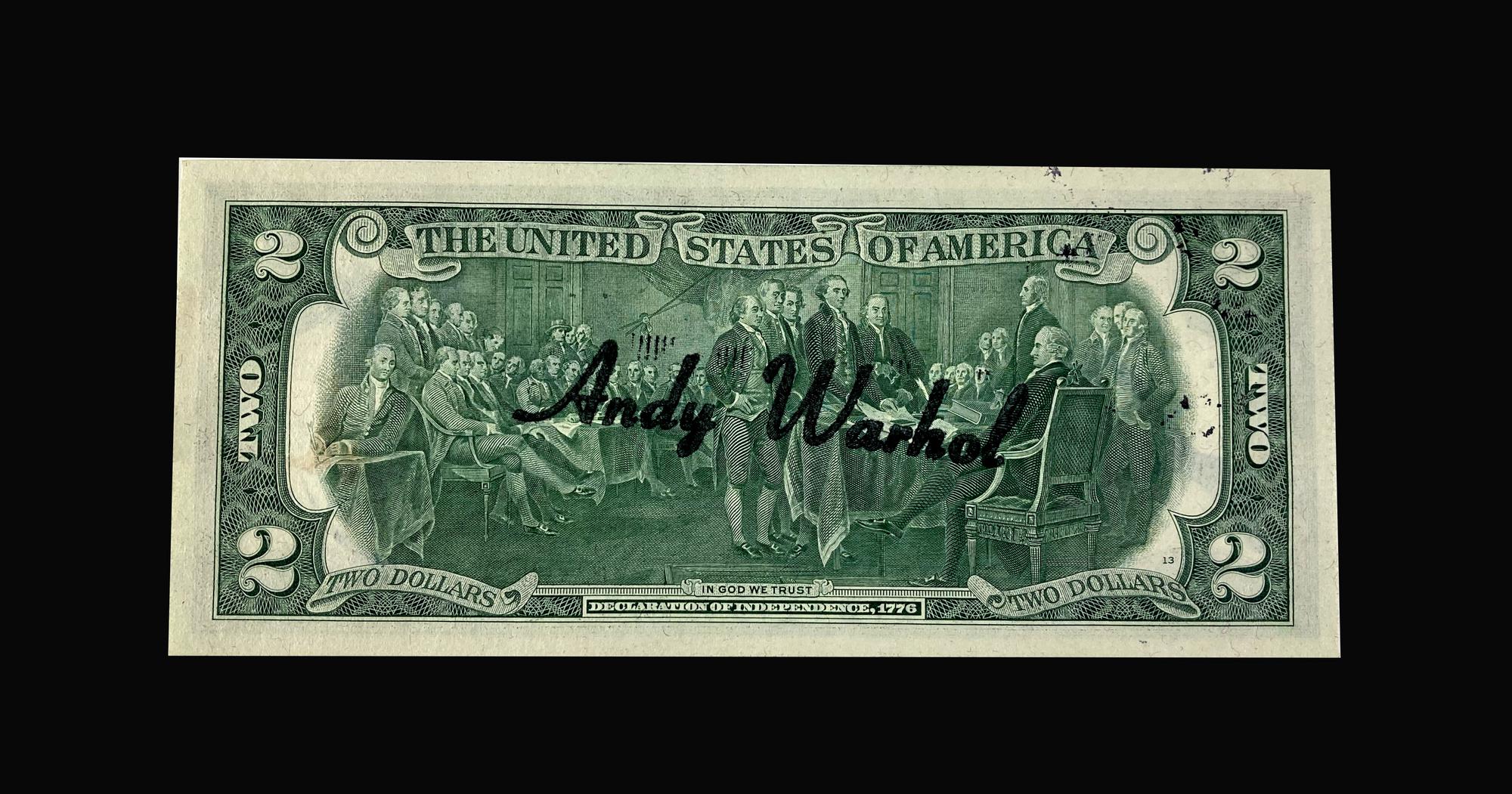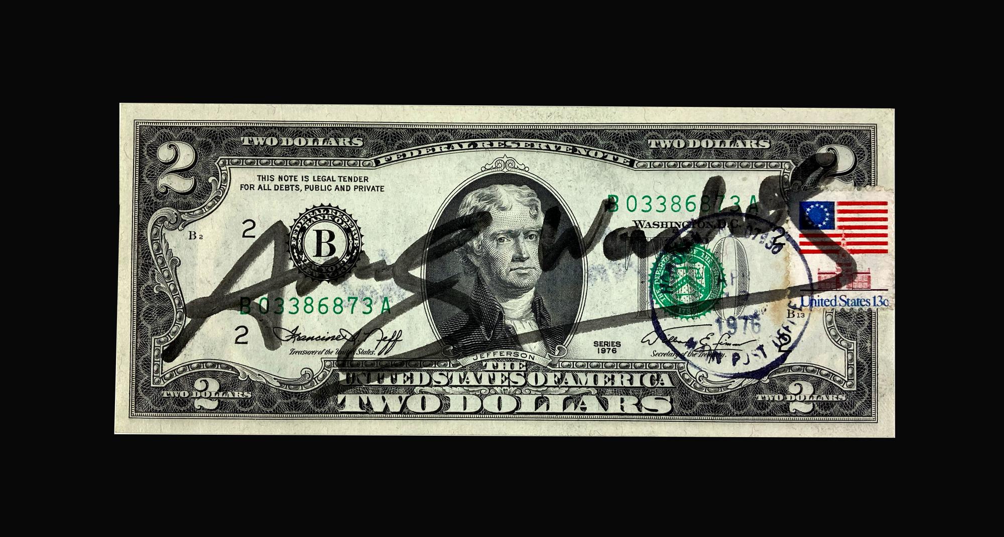 Andy Warhol (1928 - 1987) TWO DOLLARS BILL (Thomas Jefferson) intervento su...