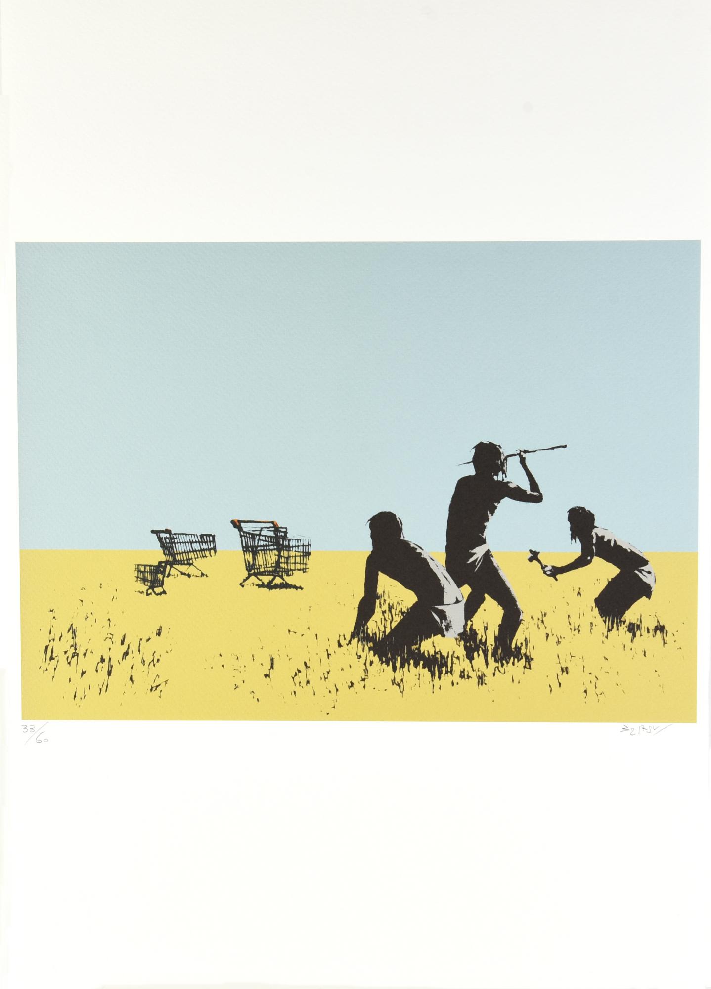 Da Banksy TROLLEY HUNTERS litografia, cm 50x35; es. 33/60 firma, tiratura e...