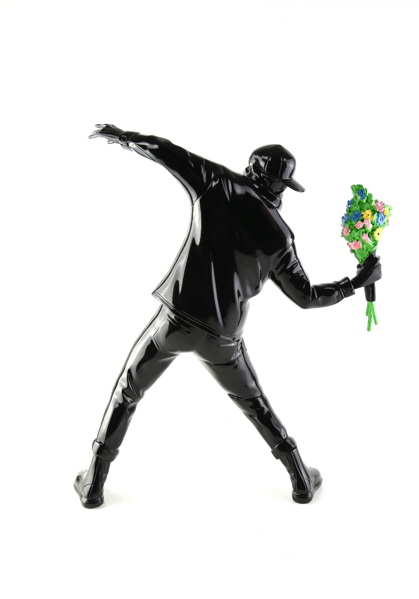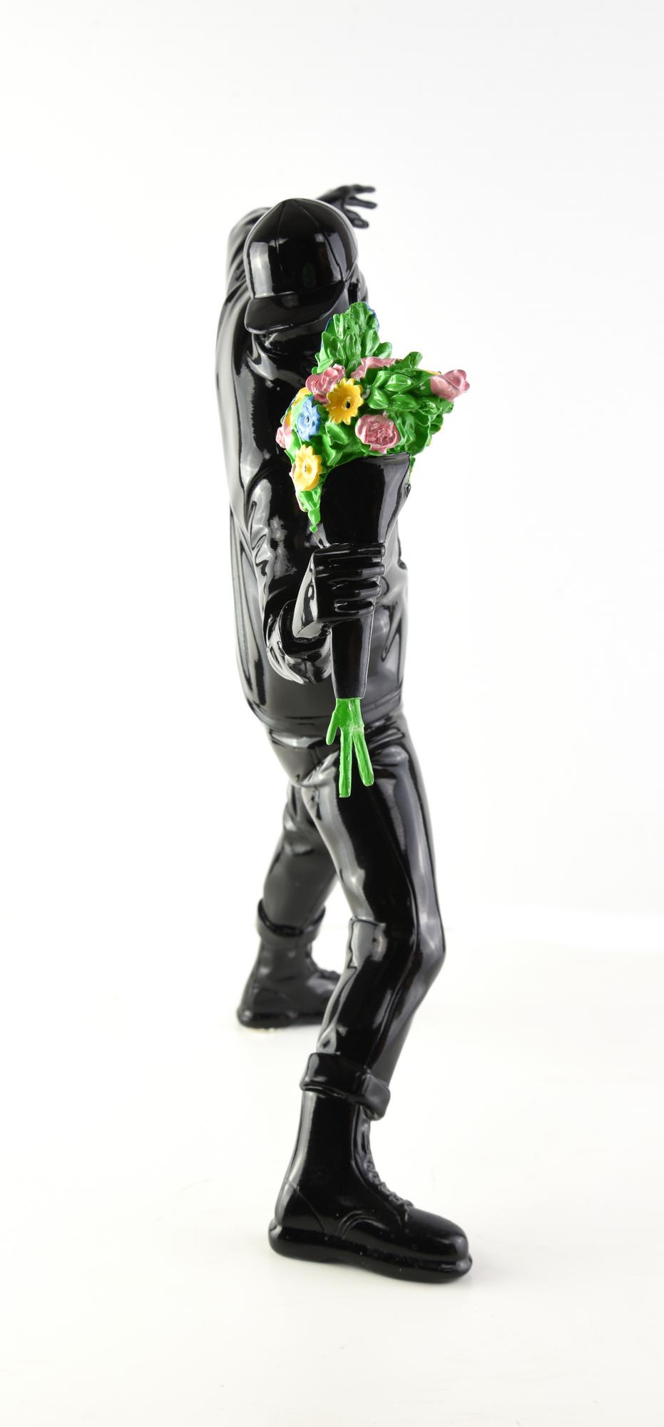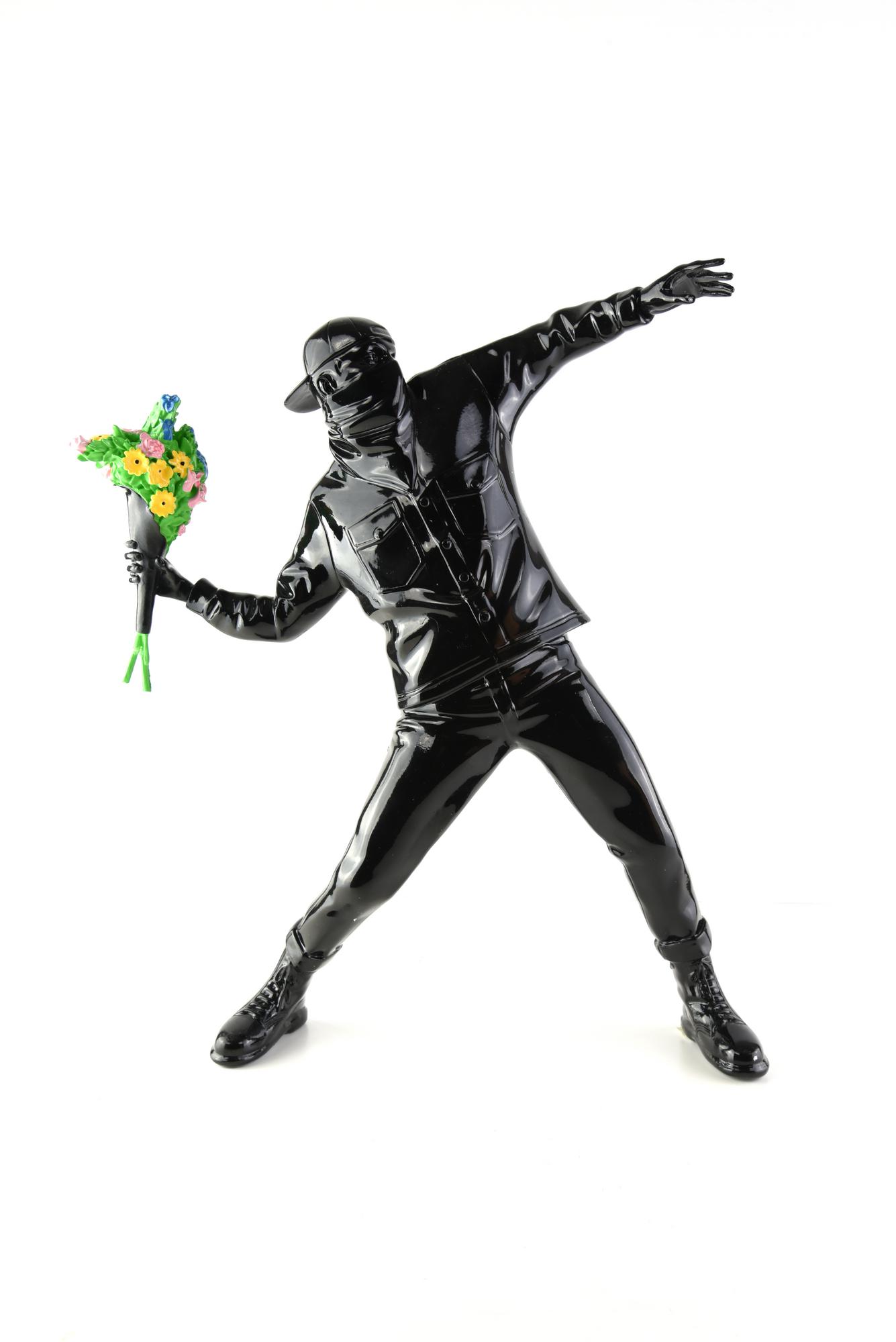 Banksy & Brandalism FLOWER BOMBER scultura in polystone, cm 36,5x35x10 sulla...