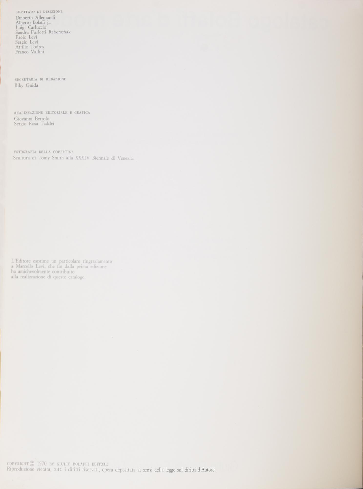 L'opera e' realizzata nella seconda di copertina del volume Catalogo Bolaffi d'Arte Moderna - Segnalati Bolaffi 1970