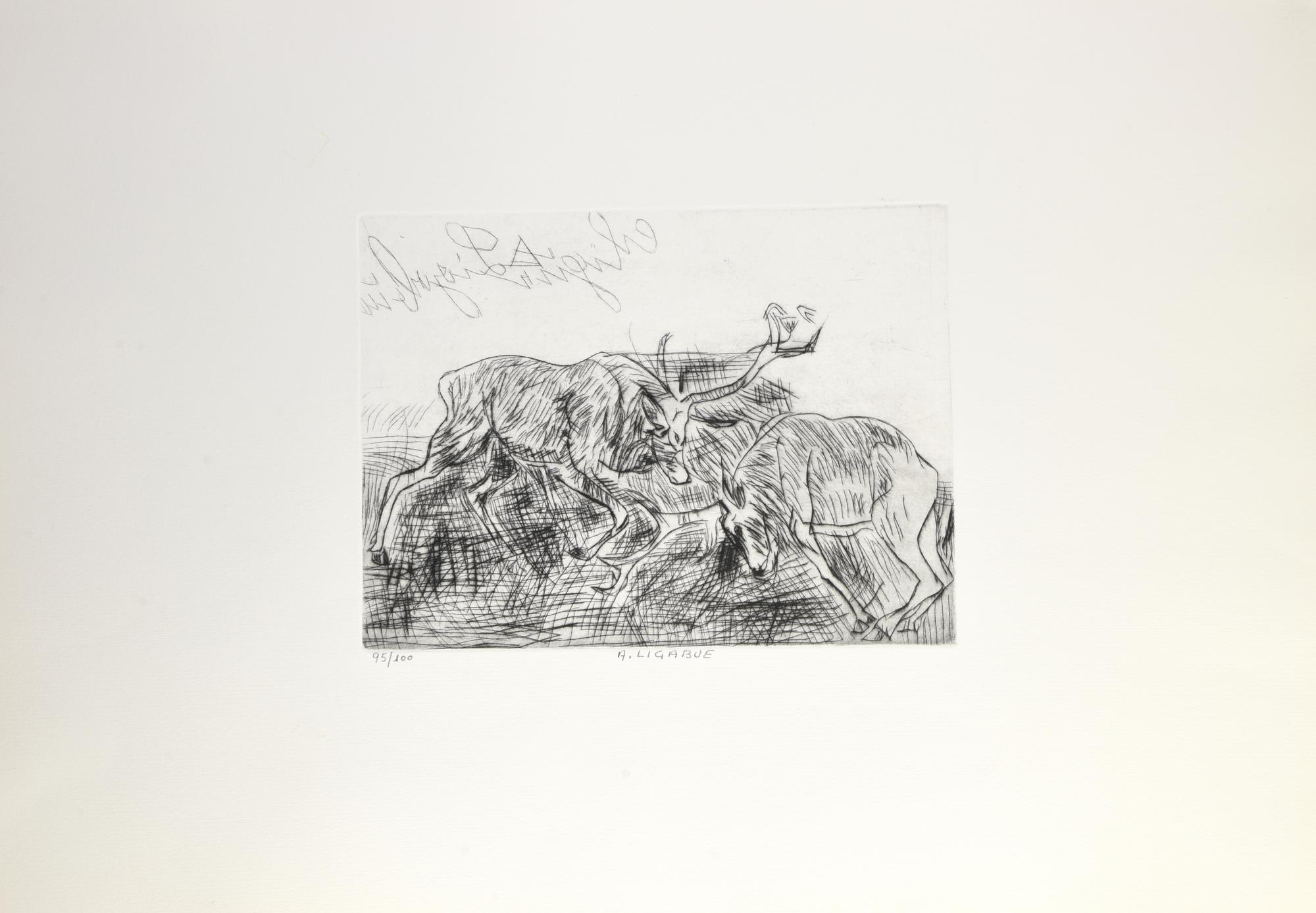 Antonio Ligabue (1899 - 1965) CERVI puntasecca, cm 22x31; su foglio, cm...