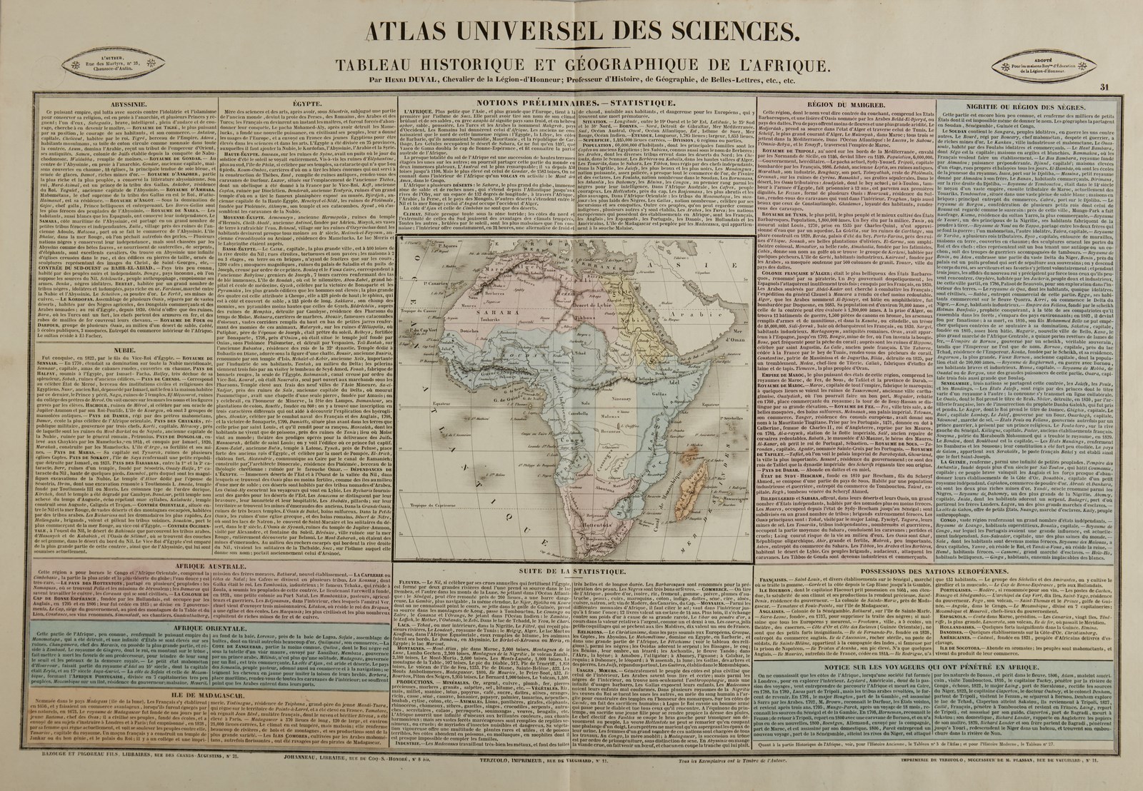 Henri Duval - Tableau historique et geographique de l'Afrique. Atlas Universel des Sciences, 1834. Incisione acquarellata su carta vergellata e filigranata.