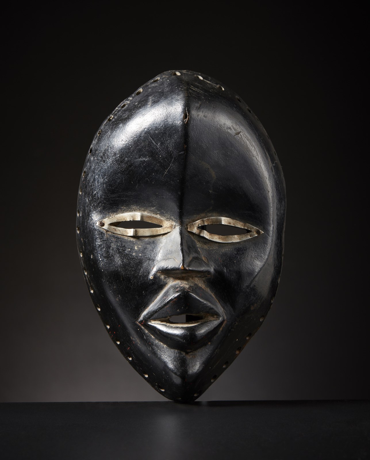 Dan - Costa d'Avorio/Liberia - Maschera Dan. Legno duro a patina lucida, pigmento nero e metallo. Segni d'uso. .