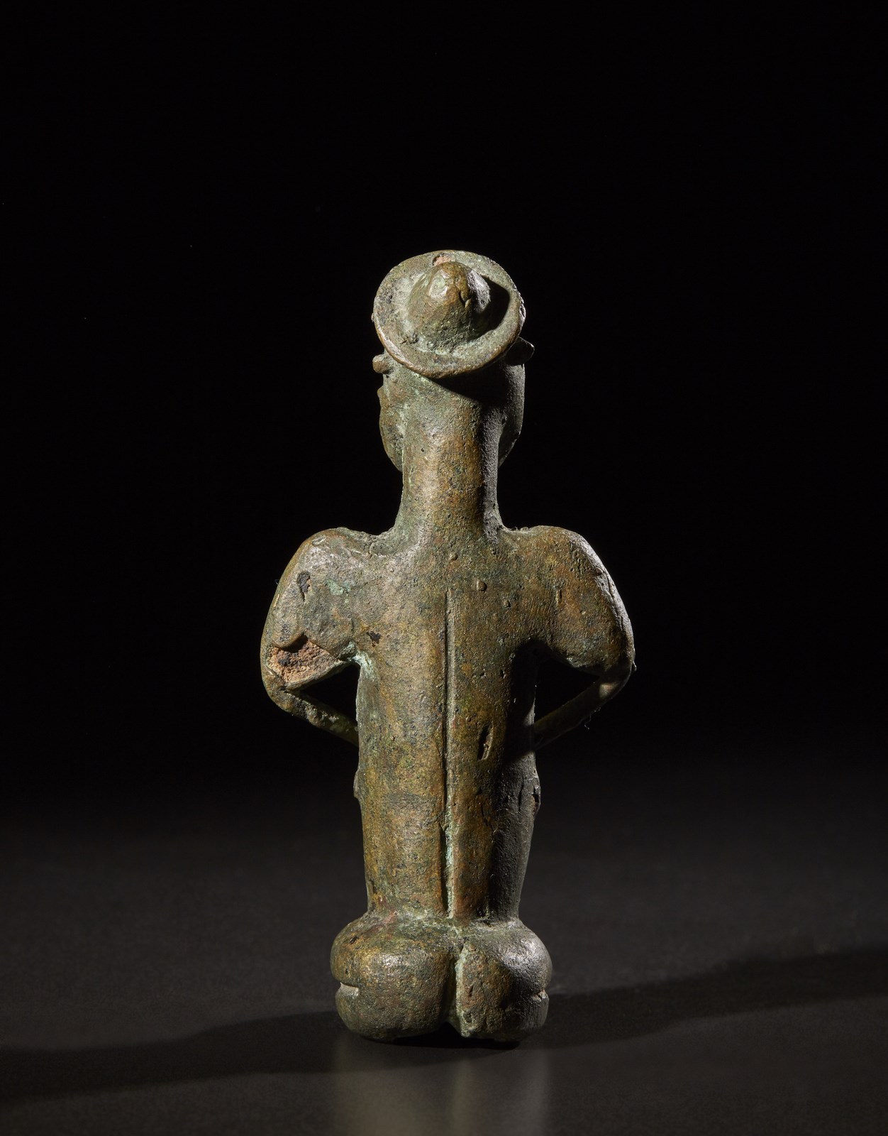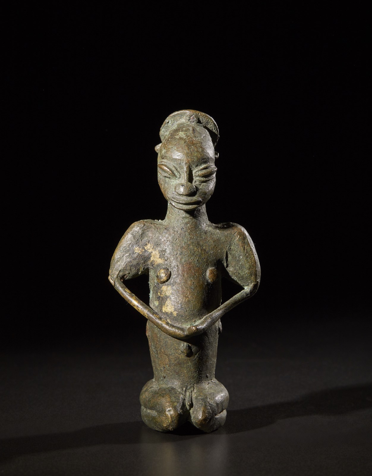 Yoruba -Nigeria - Figura seduta Edan. Bronzo con patina verde. Piccoli difetti di fusione e segni d'uso. .