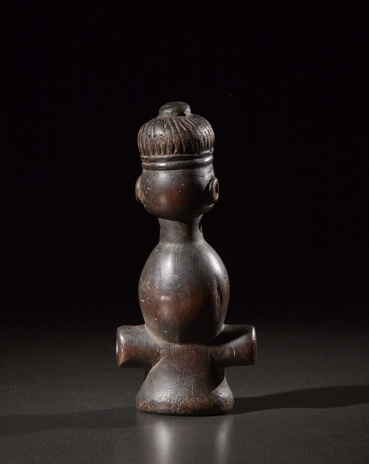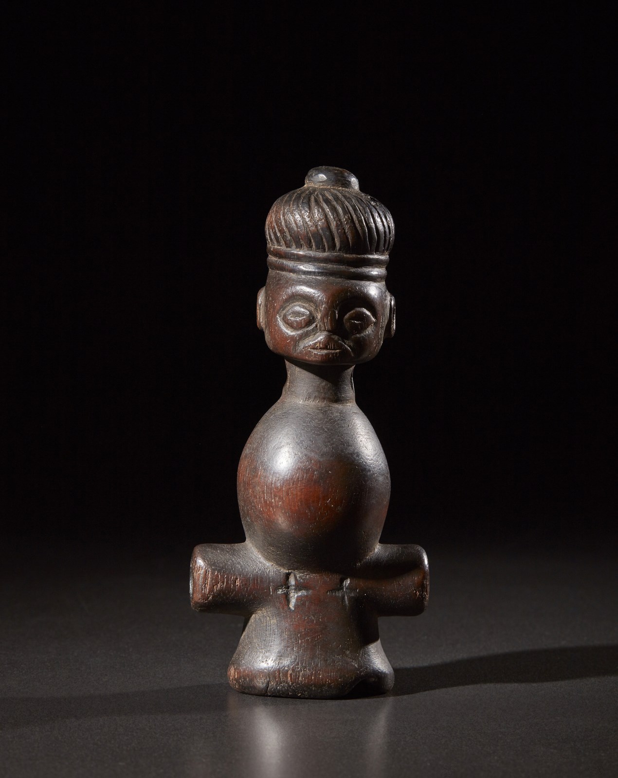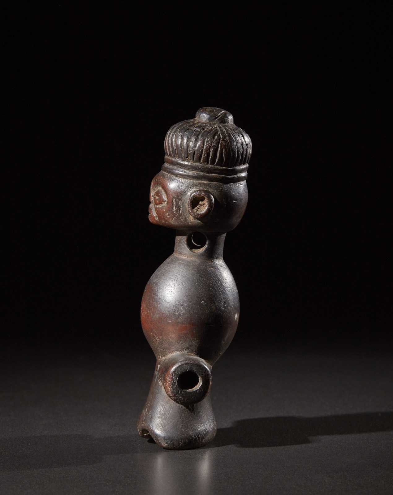 Chokwe o Lwena - Repubblica democrtica del Congo, Angola - Fischietto antropomorfo. Legno duro a patina scura. Segni d'uso.