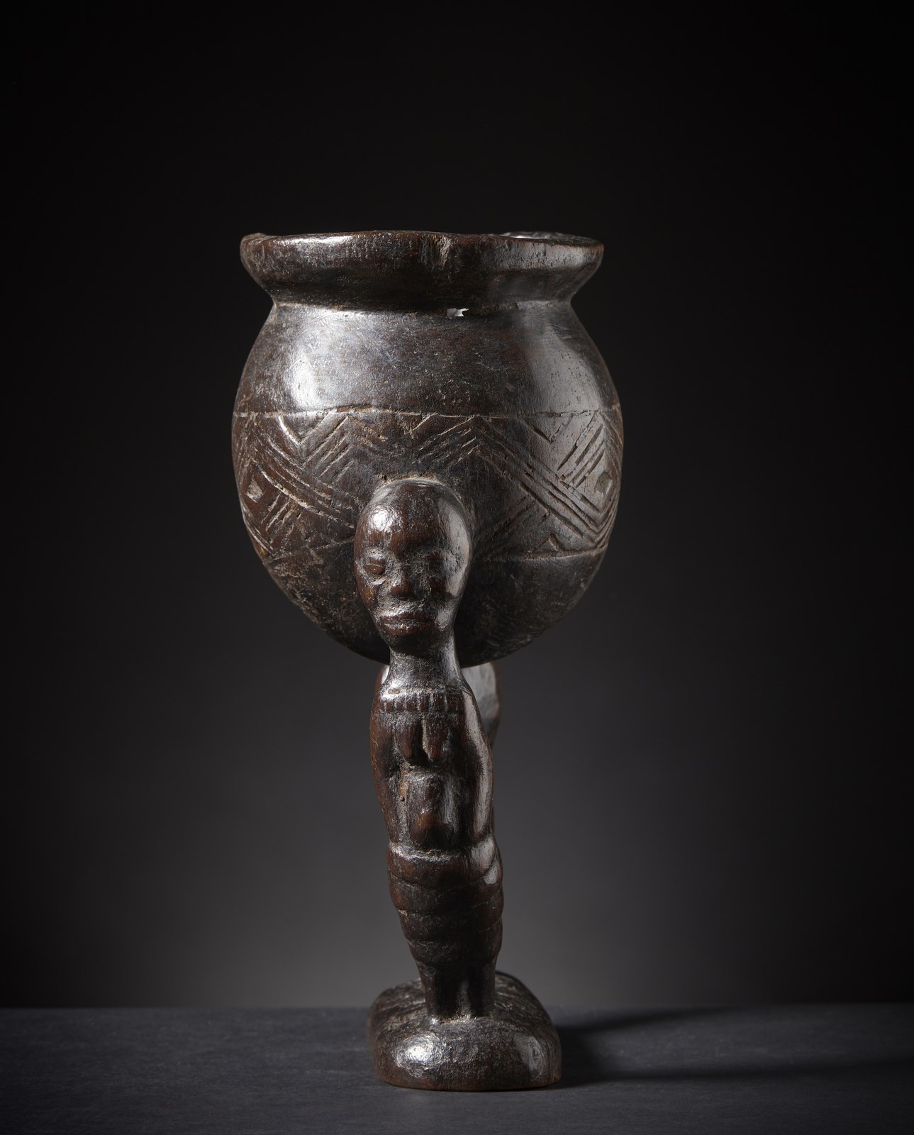 Lotto 125 | Kuba - Repubblica democratica del Congo - Coppa da libagione. Legno duro a patina scura. Piccoli difetti, una mancanza e segni d'uso. .