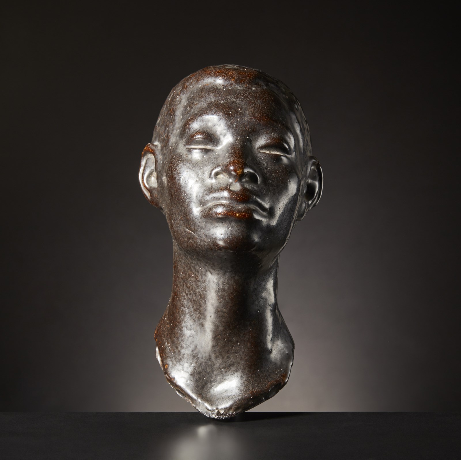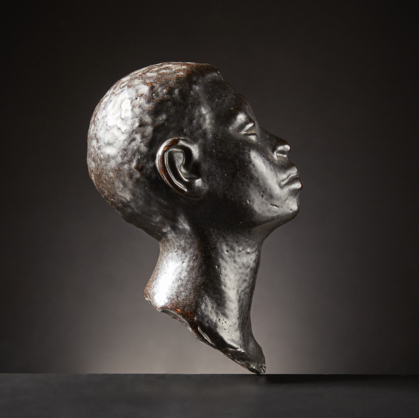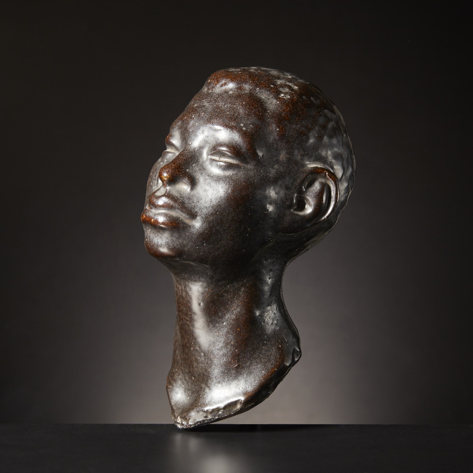 Gres porcellanato. . Cm 16,00 x 25,00 x 13,00. Splendida scultura a forma di testa di fanciullo africano in gres porcellanato di grande qualità espressiva, dimensione e patina.