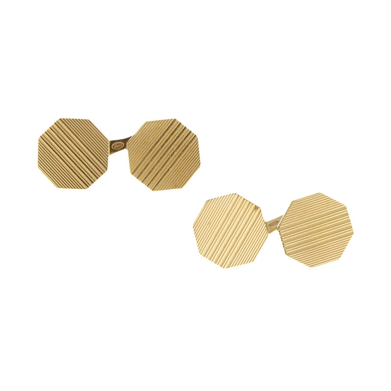 Gemelli in oro giallo di forma ottagonale immagliati a bastone.