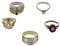 Lotto composto da 5 anelli in oro di diverso colore con pietre e diamanti taglio brillante e pietre di colore.