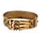 Bracciale rigido a fascia in oro rosso con perline e motivi geometrici a decoro.