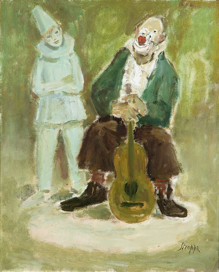 STROPPA LEONARDO Torino 1900 - 1991 "Pagliacci" 55x45 olio su tela Opera...