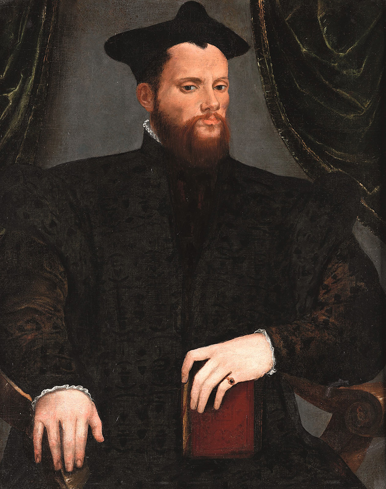 Scuola del XVI secolo Ritratto di nobiluomo con libro