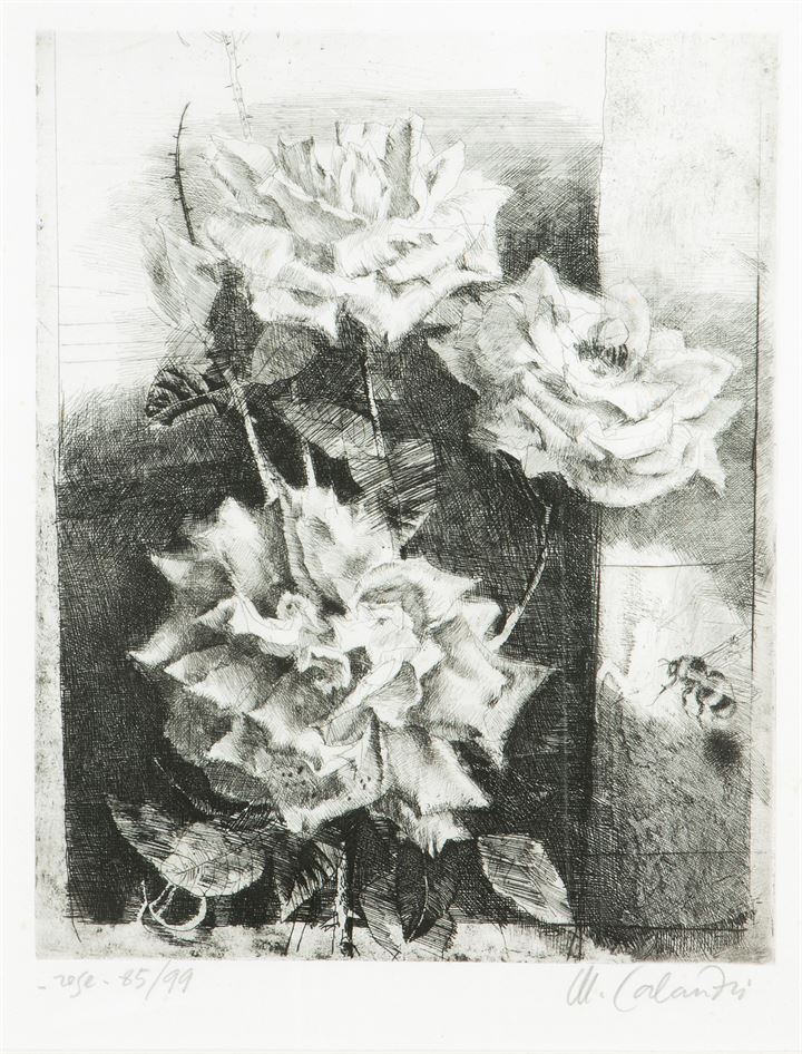 CALANDRI MARIO Torino 1914 - 1993 "Rose" 1980 50x35 foglio, 34,2x26,8...