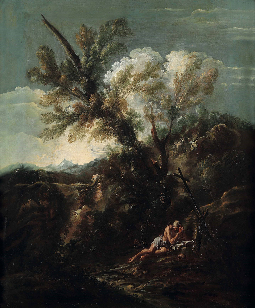 Alessandro Magnasco (Genova 1667 - Genova 1749) e Antonio Francesco Peruzzini (Ancona 1643 - Milano 1724) Paesaggio con santo eremita