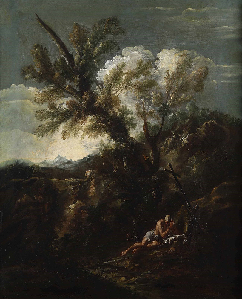 Sebastiano Ricci (Belluno 1659 - Venezia 1734) e Antonio Francesco Peruzzini (Ancona 1643 - Milano 1724) Paesaggio con santa Maria Maddalena penitente