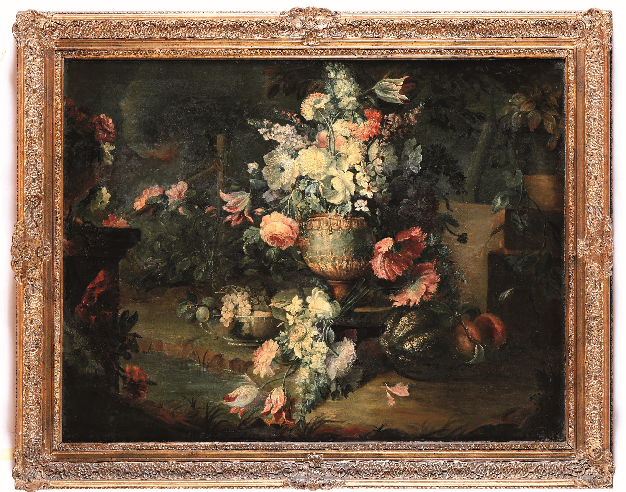 Lotto 431 | Rapous Michele Antonio attribuito a, Nature morte con frutti e vasi ricolmi di fiori